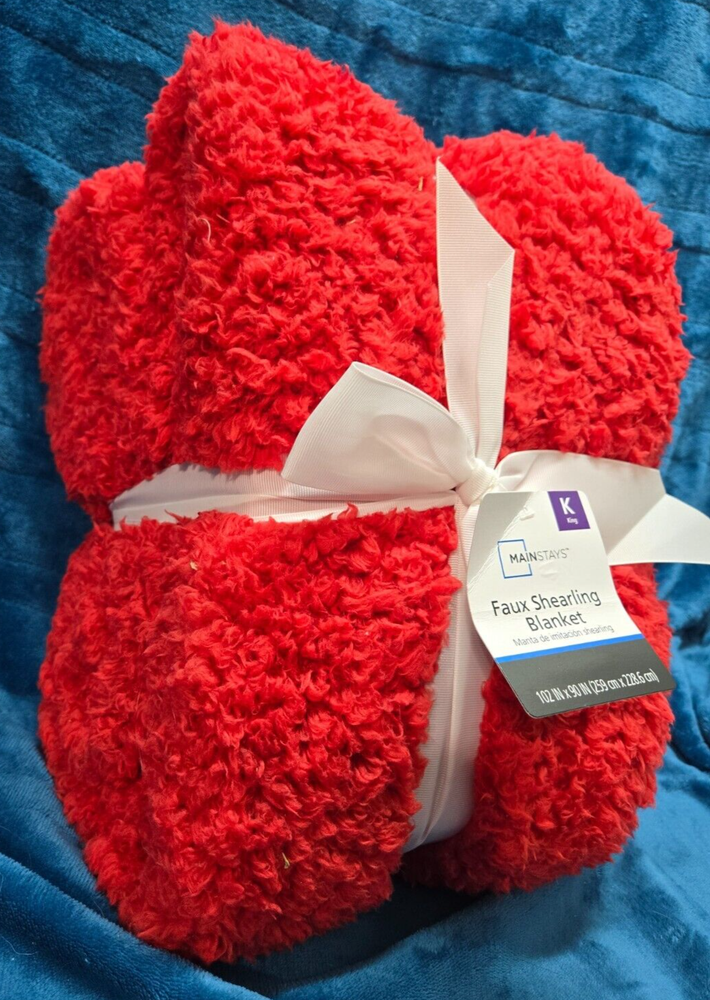 Red King Faux Shearling Blanket Cozy Faux Shearling Blanket...