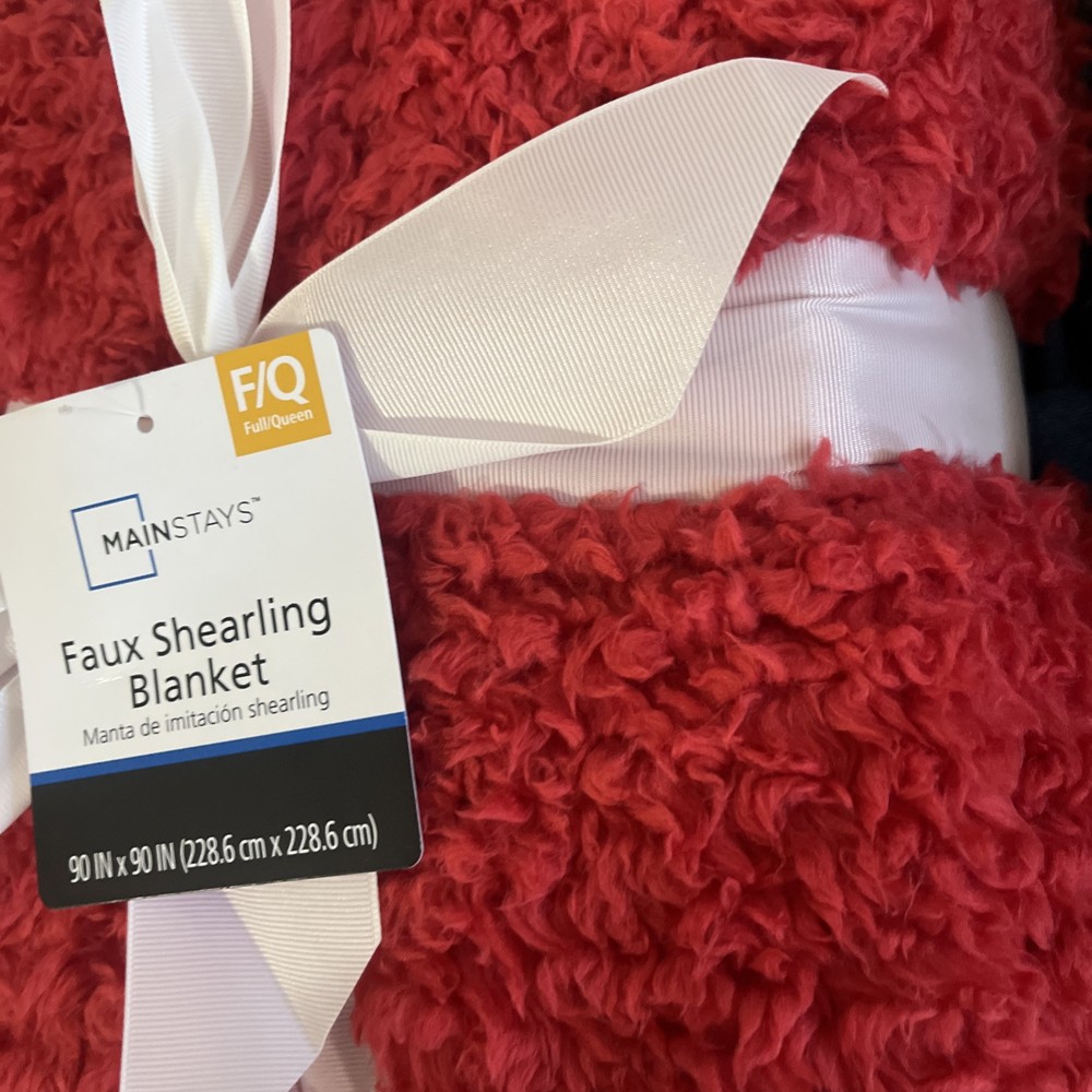 Mainstays Faux Shearling Blanket, Red, Full/Queen 90"X90", for Adult. Condition is New with tags. Shipped with USPS Ground Advantage.