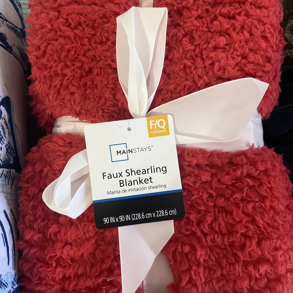 Mainstays Faux Shearling Blanket, Red, Full/Queen 90"X90", for Adult. Condition is New with tags. Shipped with USPS Ground Advantage....