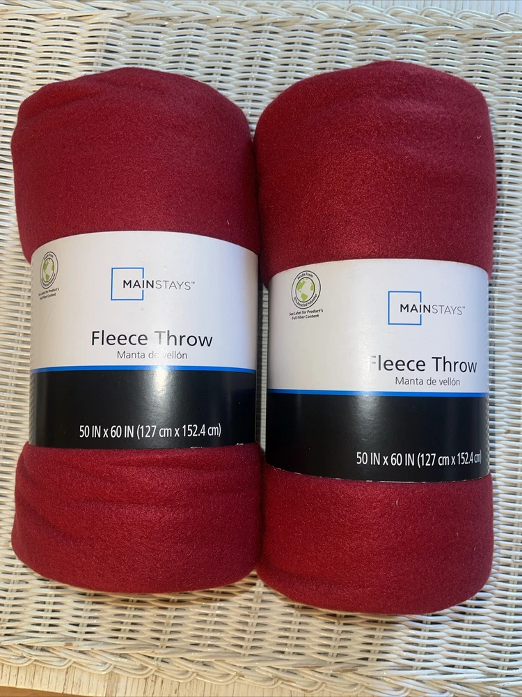 Lot of 2 Red Plush Throws. This Mainstays Fleece Plush Throw Blanket is the perfect addition to any bedroom. Measuring 50\" x 60\" inches, it's extra warm and made of polyester, plush, and fleece materials in a multicolor tie-dye pattern. The rectangular shape and traditional style make it suitable for teens, adults, and kids alike. This throw blanket features a reversible design, with no closure type, and is machine washable for easy care. The Gray Paw model is a two-unit quantity and is ideal for anyone looking for a cozy and comfortable addition to their bedding collection.