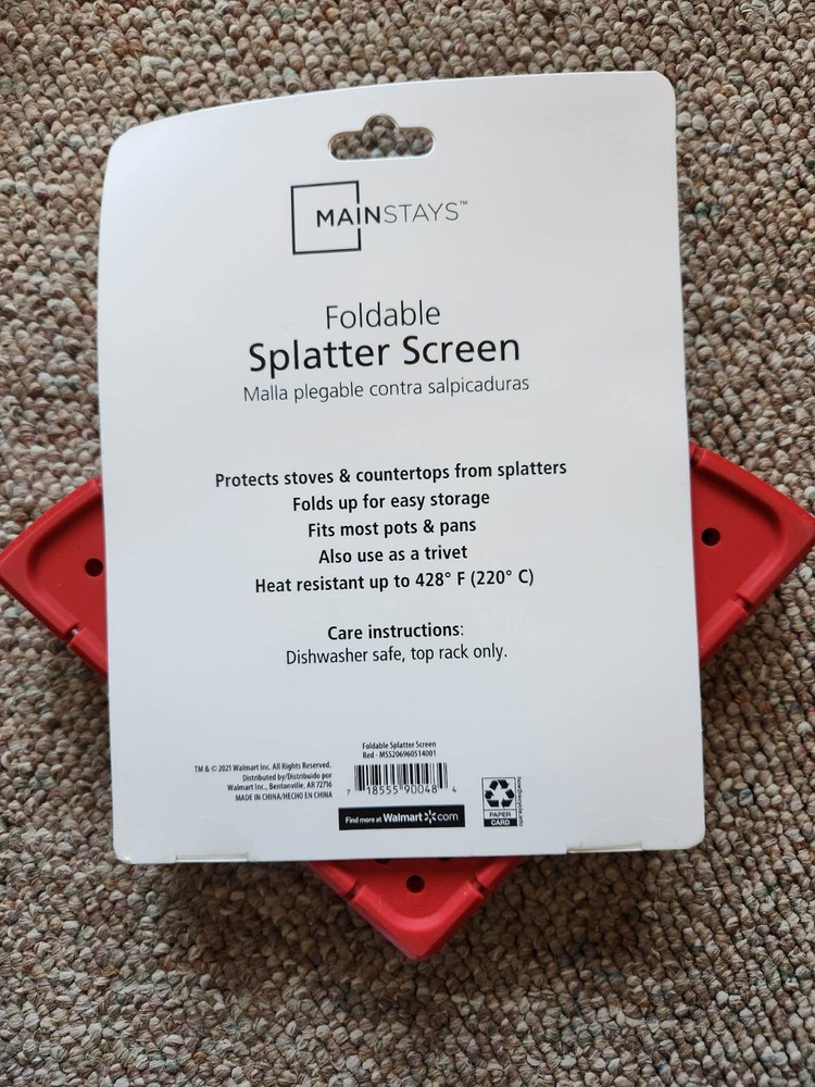 Mainstays Foldable Splatter Screen, Protects Stoves & Countertops from Splatter. Dishwasher Safe, top rack only. NEW