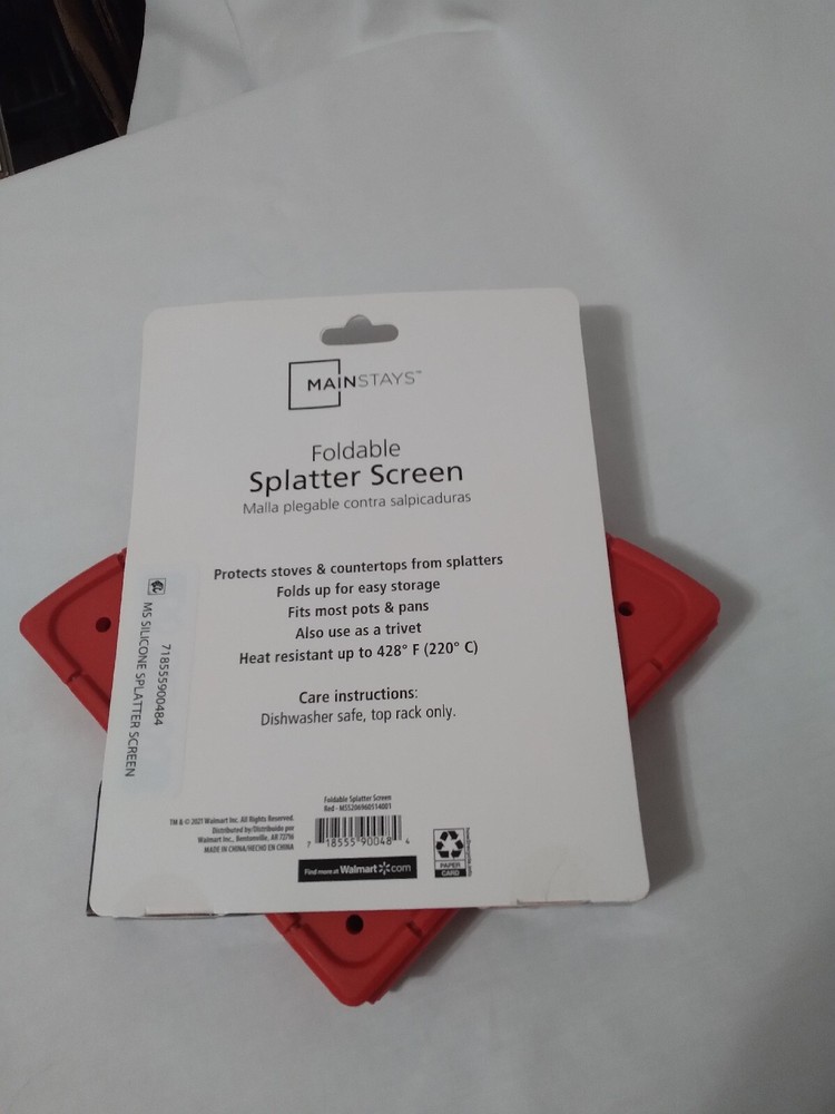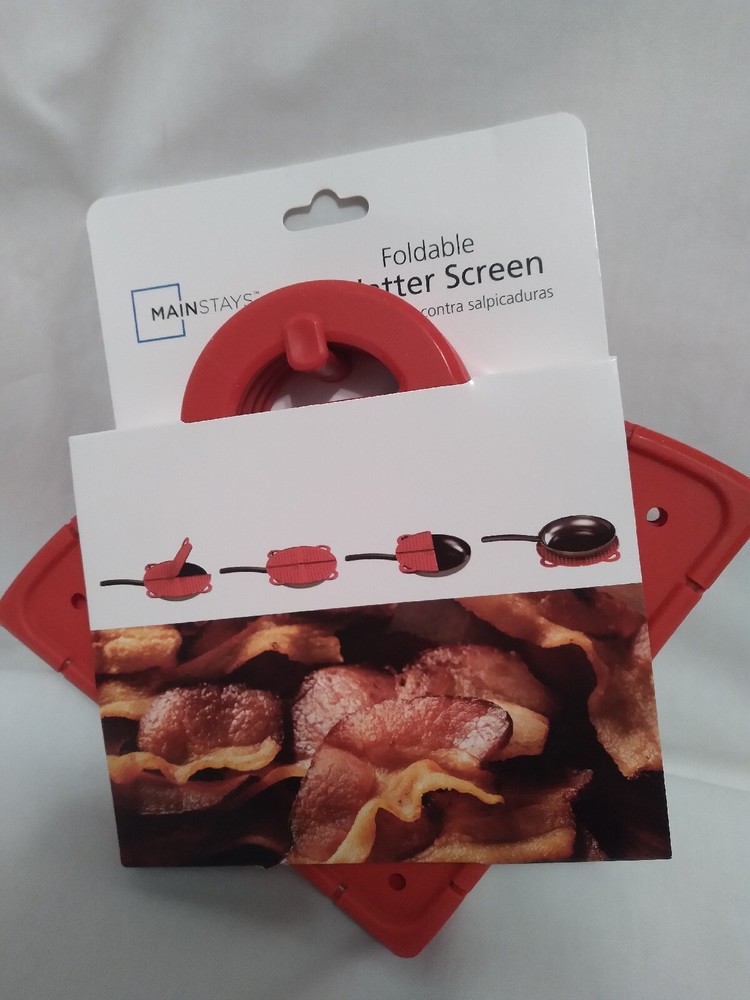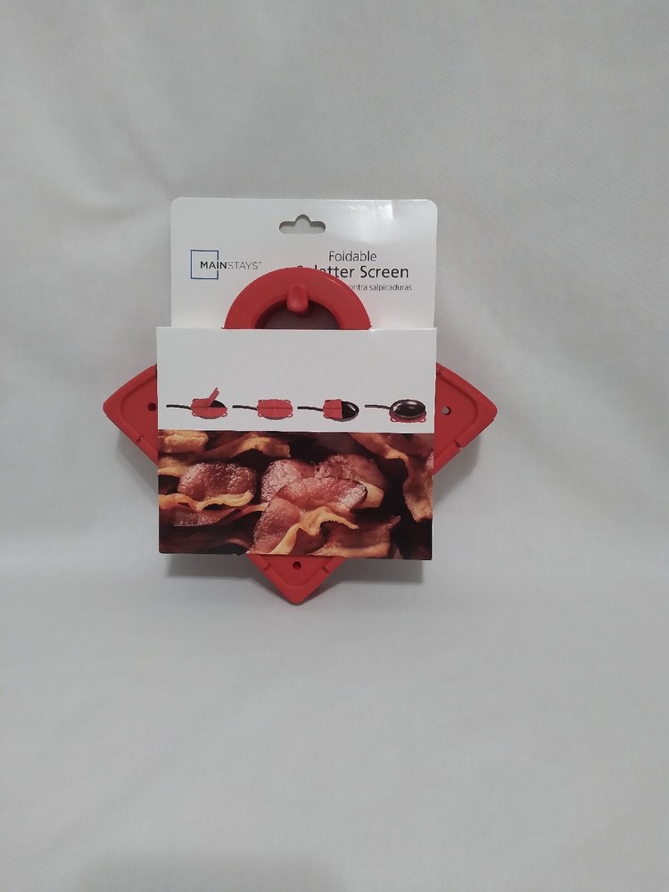 Mainstays Foldable Splatter Screen Silicone. Red. New