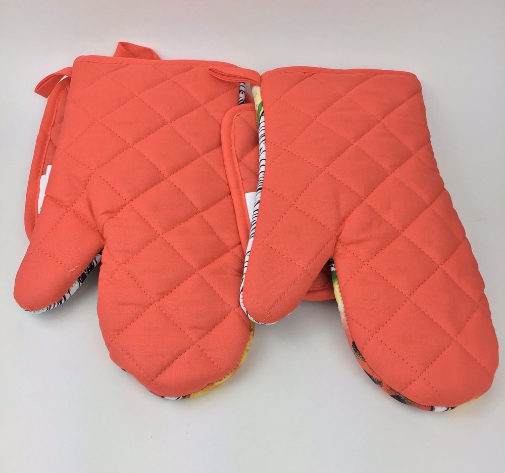 This oven mitt and towel set is a fantastic deal—four bright, fun pieces that add a pop of color to the kitchen. The mitt and potholder are thick and heat-resistant, while the towels are soft and absorbent. Perfect for baking or everyday use, and they arrived brand new with tags. Great quality for the price!