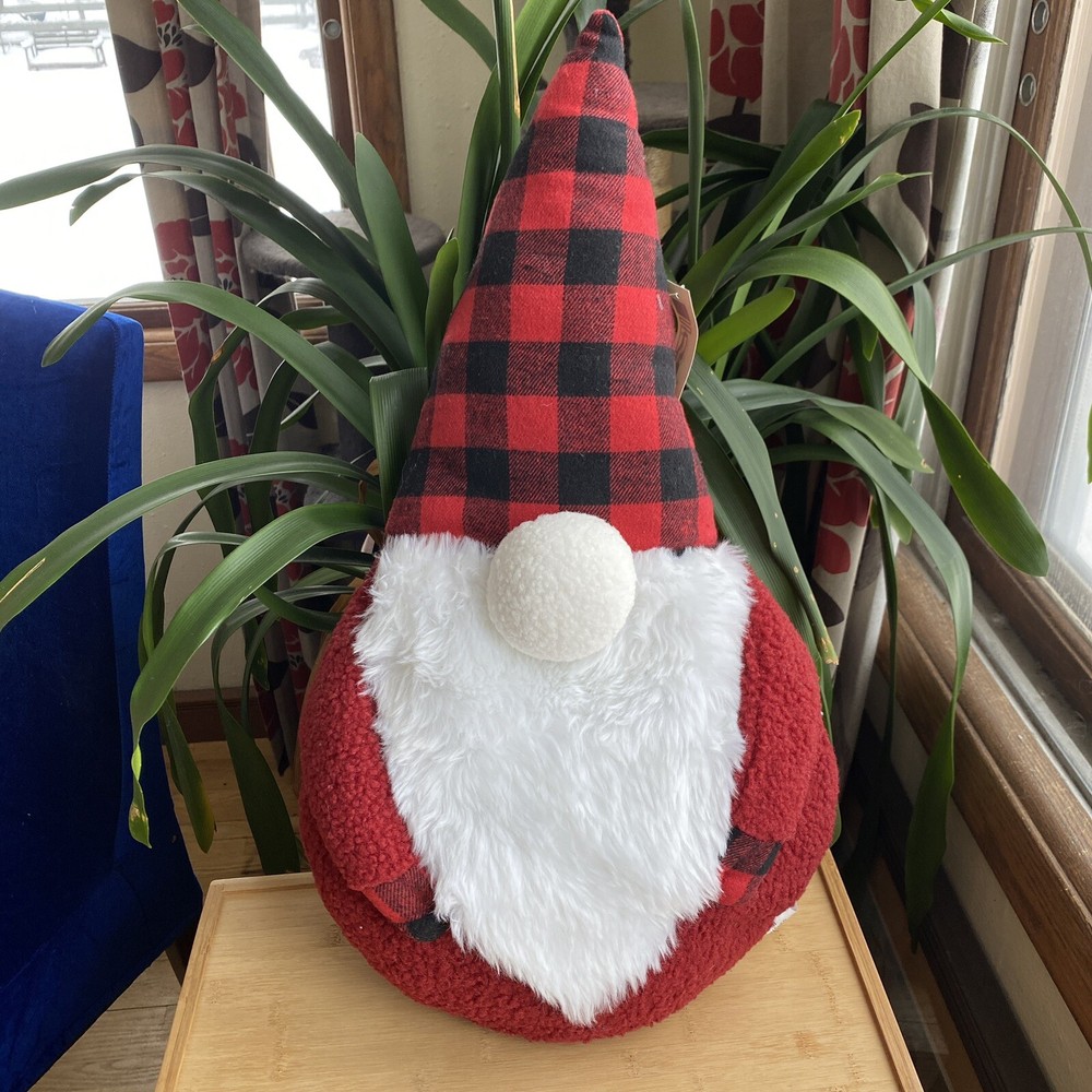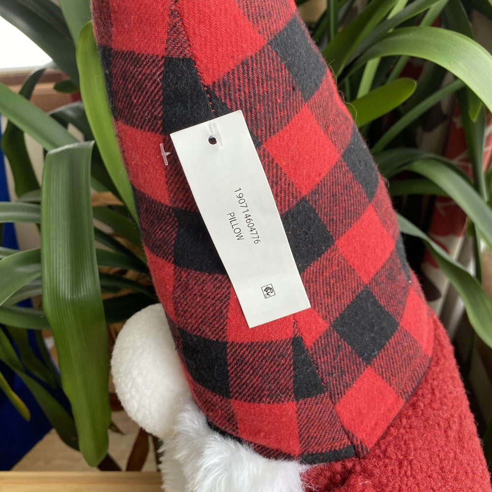 Mainstays Gnome Plush Figural Buffalo Plaid Pillow NWT.