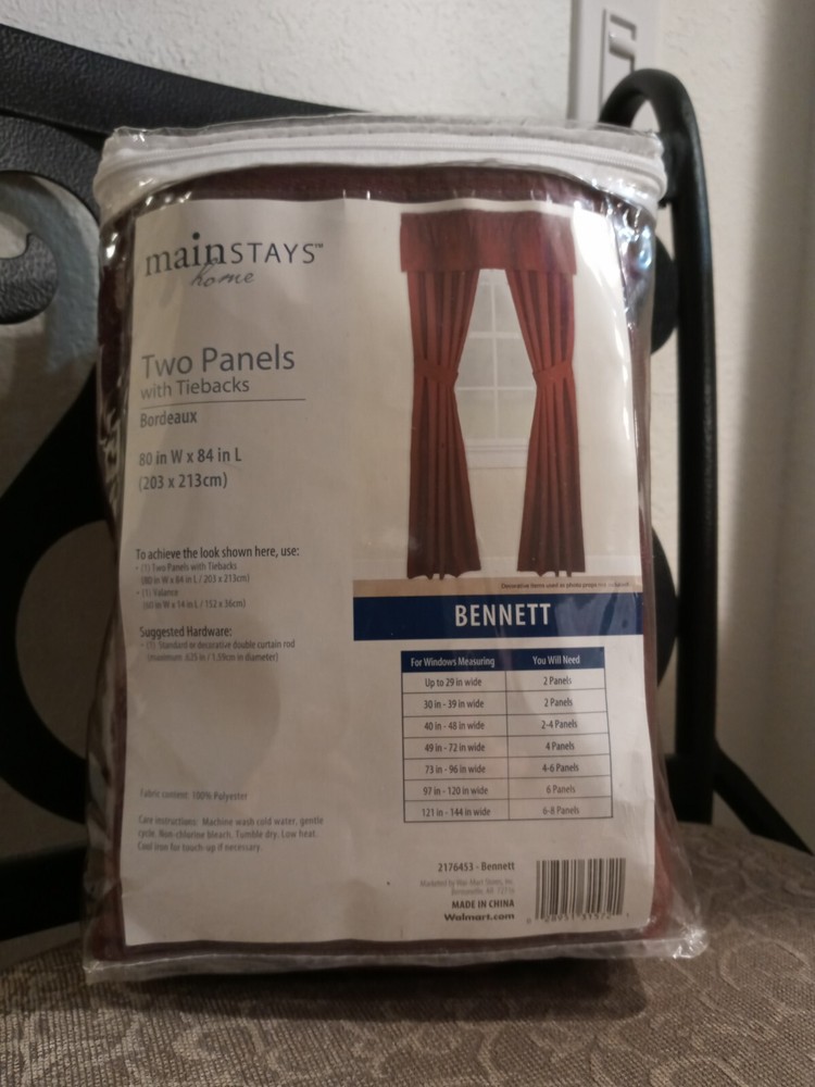 Mainstays Home 2 Panels & Tiebacks Bordeaux BENNETT 80" W x 84" L. Used condition.