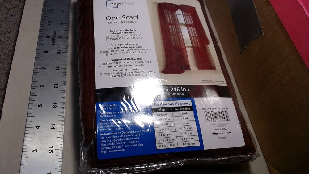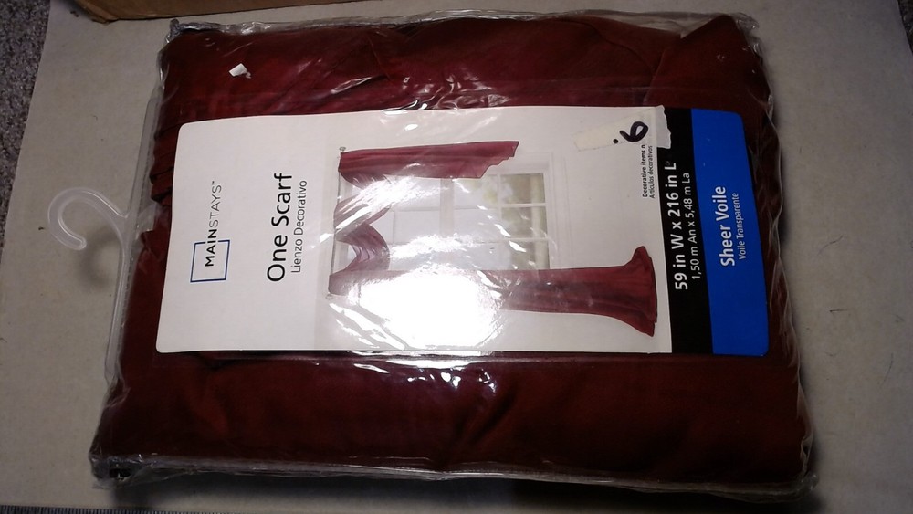 Mainstays Home Marjorie Sheer Scarf 59 x 216 inches Maroon/Burgundy NOS - see pics...
