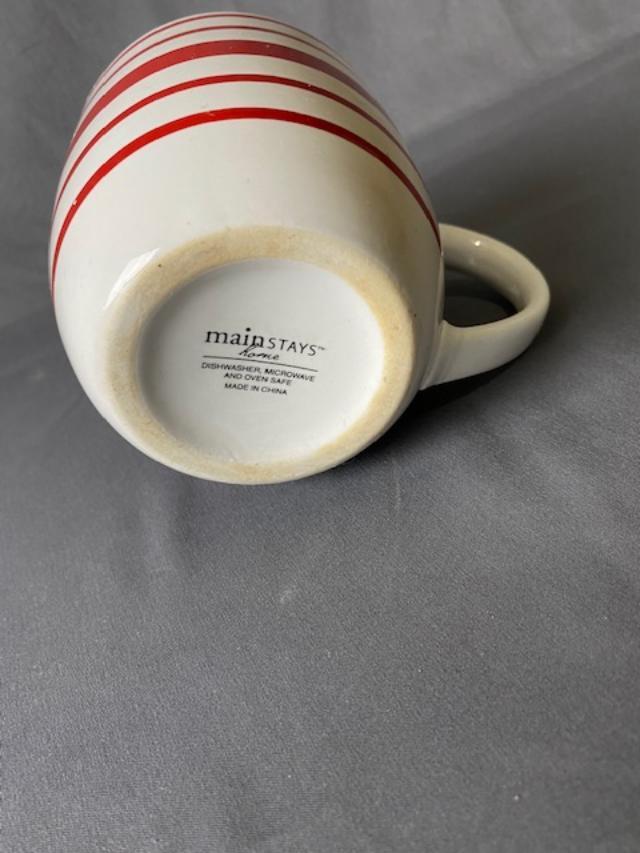 Mainstays Home Red Striped Mug Good Used Condition - some spidering inside We do our best to describe our items as accurate as possible. All our items are stored in a smoke free home. Please feel free to contact us with any questions you may have. Payment Terms Please pay within 5 days of auction ending or a buy now purchase. We do combine shipping, so feel free to keep shopping with us we will re invoice you when you are finished. Shipping Terms We charge actual United States Post Office shipping by calculated rate, we do not inflate shipping prices. All shipping prices are calculated rate is determined by the United States Post Office. We ship both First Class mail or Priority mail. We ship on business days only, Saturday, Sunday & Holidays are not considered business days. We have no control over how the US Post Office handles the package. You will receive a Delivery Confirmation by email so you can track your package, except with International Packages. For International Packages Import duties, taxes, and charges are not included in the item price or shipping cost. These charges are the buyer's responsibility. Please check with your country's customs office to determine what these additional costs will be prior to bidding or buying Please be aware some international packages could take up to 6 weeks to receive. We do combine shipping for additional items you purchase. Please feel free to keep shopping and we will send you a updated invoice with combine shipping rates. Please check out our Home Page for specials we may be running on shipping. Return Terms We take Returns up to 30 Days after Purchase. We will refund fully once we receive the item back and check to make sure we received the item in the condition we sent it. Buyer pays return shipping to seller for all cases. Listing and template services provided by inkFrog