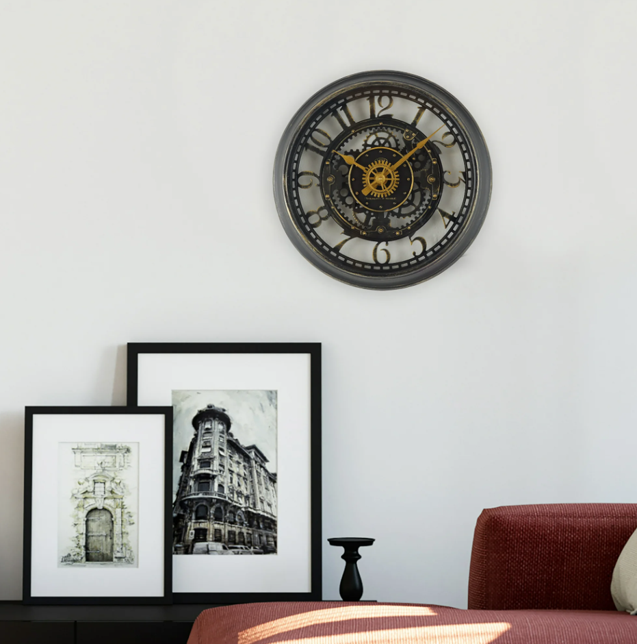 Love this sleek industrial-style clock! The oil-rubbed bronze finish gives it a classy vintage vibe, and the gear cutouts make it stand out. The quartz movement keeps perfect time, and the glass lens adds a premium touch. It's the perfect blend of form and function—looks great in my living room! (Battery not included, but easy to set up.)