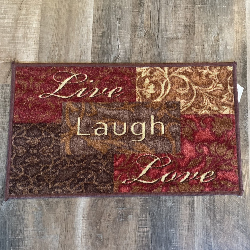 Mainstays Live, Laugh, Love Color Block Nylon Indoor Accent Rug, 17"x30". Condition is Pre-owned. Shipped with USPS Ground Advantage....