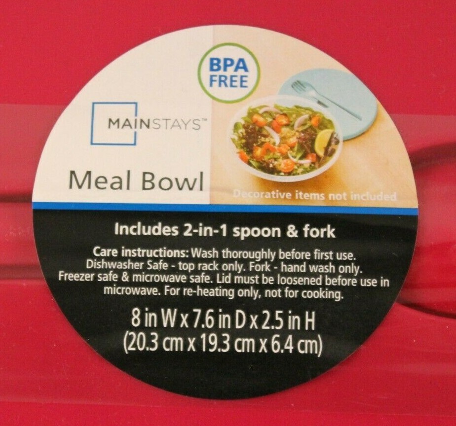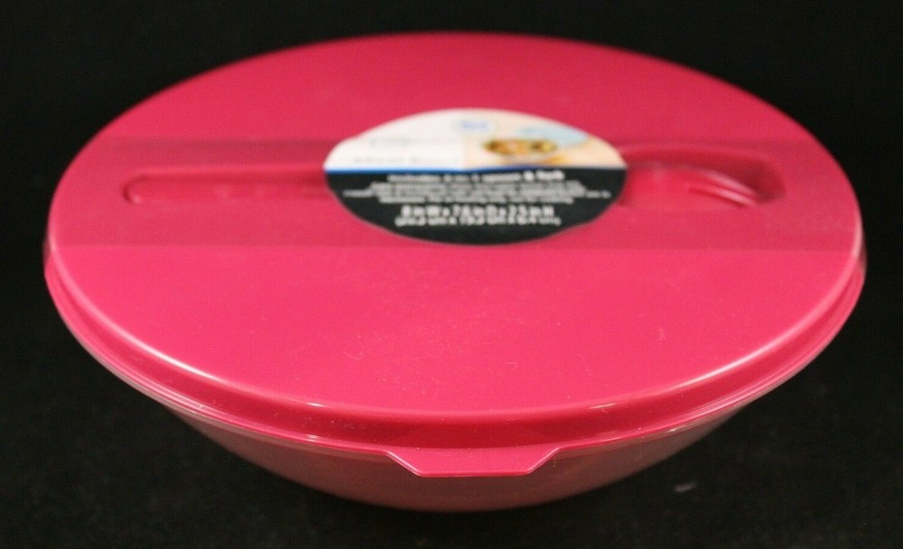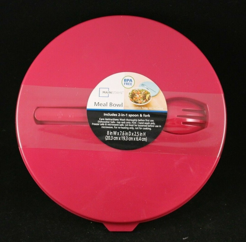 Mainstays Meal Bowl Includes 2-In-1 Spoon & Fork (Spork) BPA Free Raspberry (Lid/Utensil Color) Brand New with Original Packaging