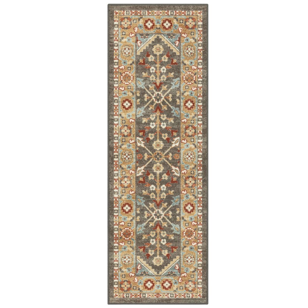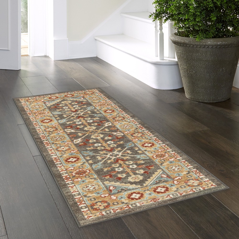 Product details Updating your space is a breeze with the traditional design of the Mainstays Rust Persian Area Rug and Runner Rug Collection. This indoor print rug collection is made with stain and fade resistant polyester yarn. Sizes available are 1’8” x 2’10” accent rug, 1’8” x 5’ runner rug and 5’ x 7’ and 7' x 10' area rugs. All sizes constructed with skid-resistant latex backing to keep the rug in place. Accent and runner rug sizes are machine washable for easy care. Area rug size is spot clean or professionally clean. The Mainstays Persian Area Rug Collection is for indoor use and perfect for any room in your home including the entryway, hallway, living room, bedroom, dining room, or kitchen. 100 Percent Polyester Yarn Level Loop Print Construction 0.38 inch Pile Height Rust Brown Multi Colorway Stain and Fade Resistant Skid-Resistant Latex Backing 0.38 Inch Pile Height Actual Rug Size is 1'8" x 5' or 20 inches x 60 inches Mainstays Brand Indoor Use Domestic Made