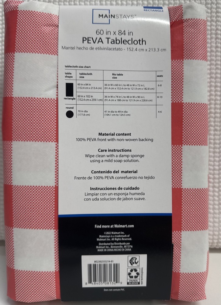 Add a fresh and timeless touch to your dining experience with this Mainstays PEVA Tablecloth. The checked pattern in red and white is perfect for a spring or summer gathering, whether indoors or outdoors. The material is waterproof and easy to clean, making it a practical choice for any dining room or kitchen. The tablecloth is a traditional style and measures 60"x84", making it a perfect fit for most dining tables. It is made of high-quality PEVA material and is sure to last for years to come. Enhance your dining experience with this beautiful and functional tablecloth from Mainstays.