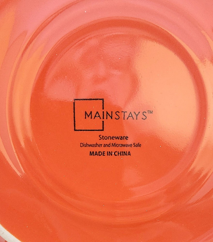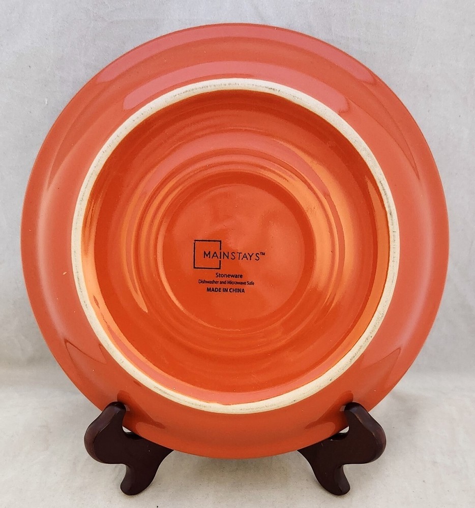 Mainstays Stoneware 8" Salad Plate Orange Spice (Rainforest) Mainstays stoneware salad plate, in the Orange Spice (Rainforest) pattern, is all orange, with no trim and embossed rings and rim. Excellent pre-owned condition; no chips, no cracks, no crazing. 8 1/8" diameter Check out my other items for more great stuff. I will be happy to combine items to reduce shipping costs when possible if you win more than one item. Good Luck and Happy Bidding!