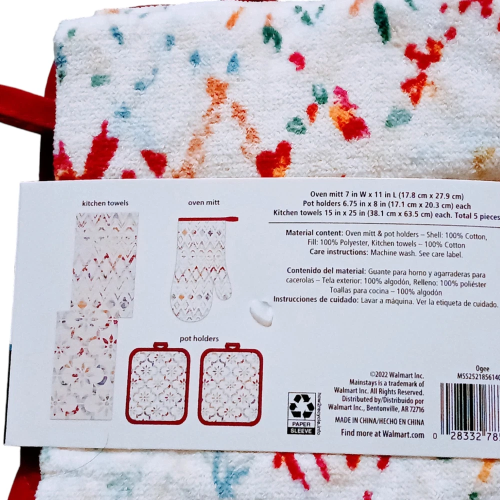 | Set Includes | oven mitt, 2 hand towels. 2 pot holders |