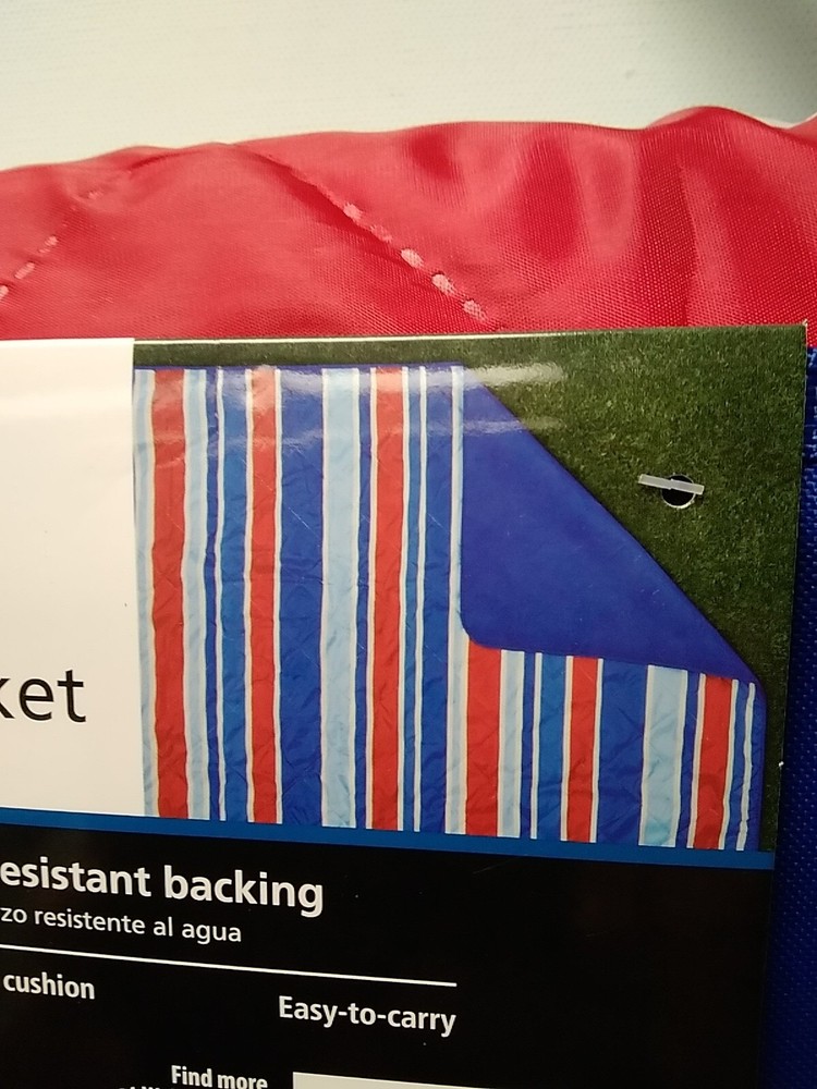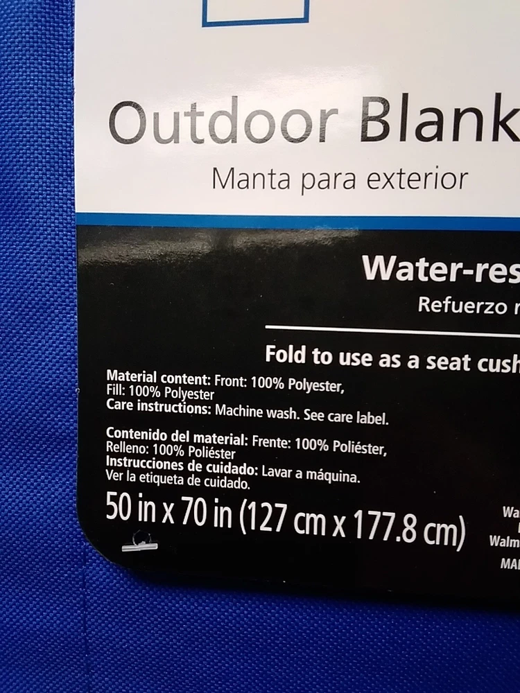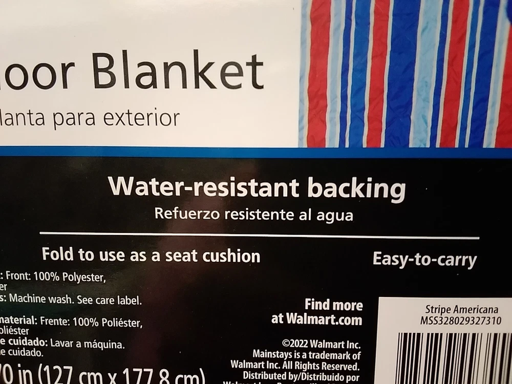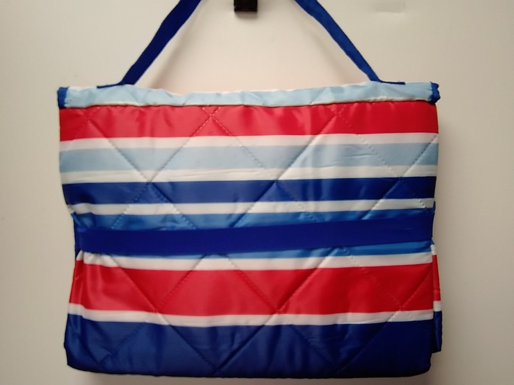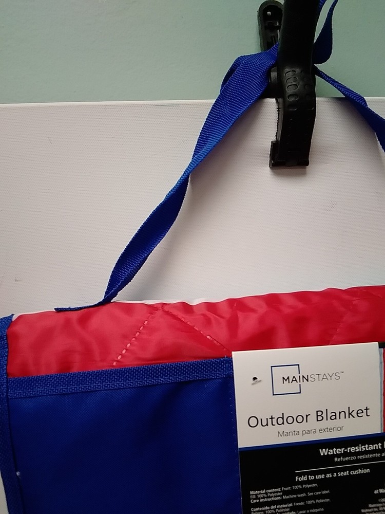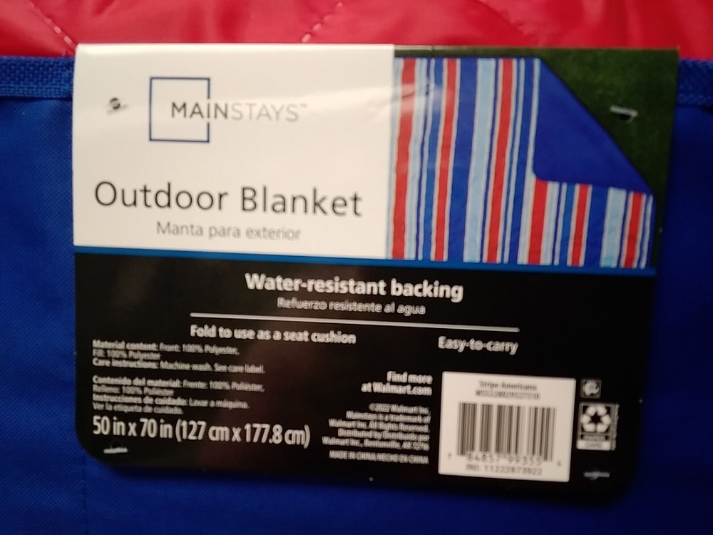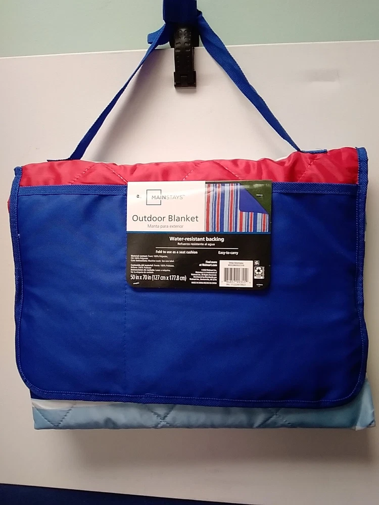 New Mainstays Outdoor Blanket Blue/Red Fold to Use as Seat Cushion 50X70 * 100% Polyester * Machine Wash * With Handle * Easy to Carry * Water Resistant Backing