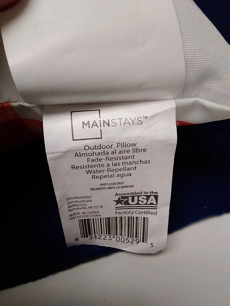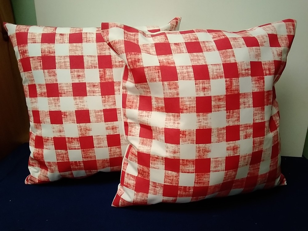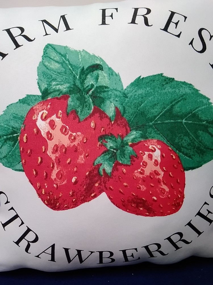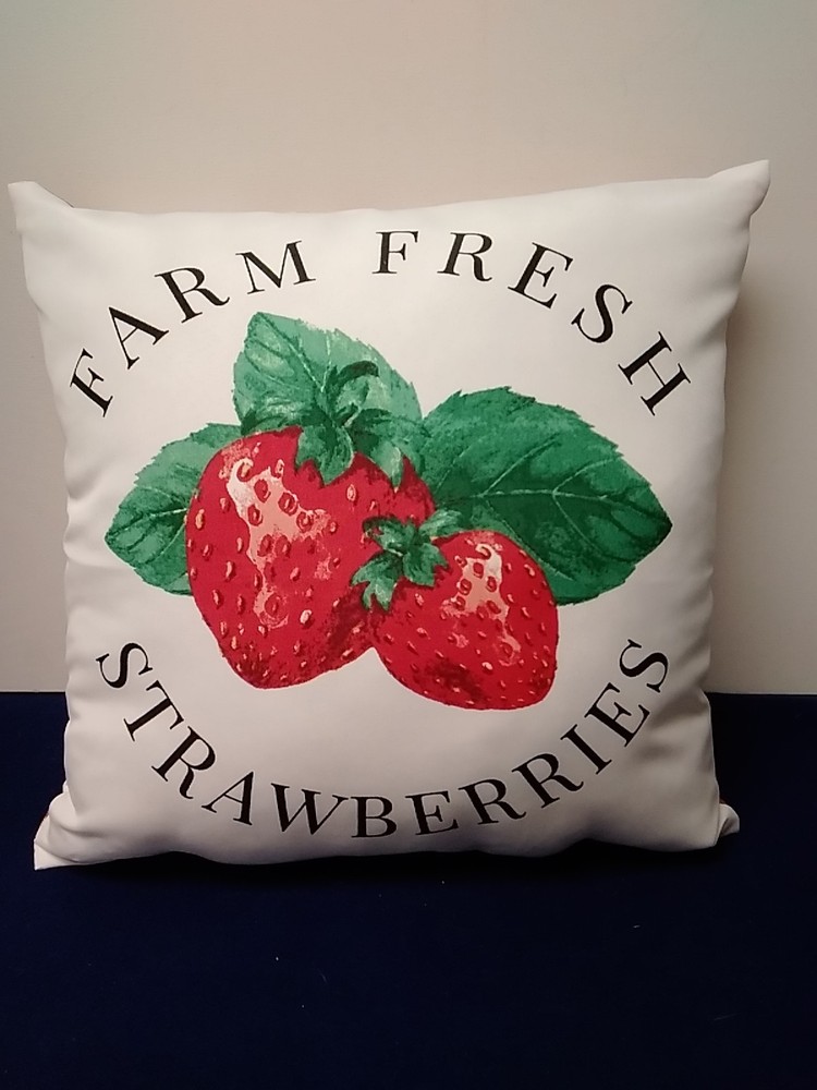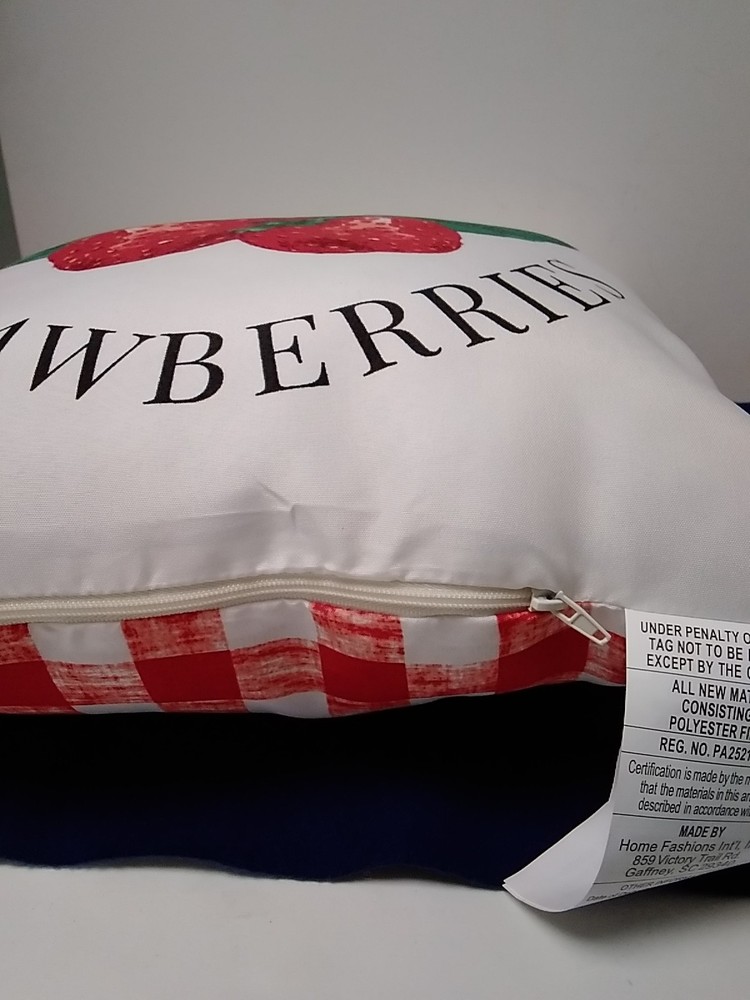 New Mainstays OutdoorPillows Set of 2 White/Red "FARM FRESH STRAWBERRIES" * 100% Polyester * Zipper on Bottom * Fade Resistant Fabric * Back Side Red & White Checker * 16X16X5