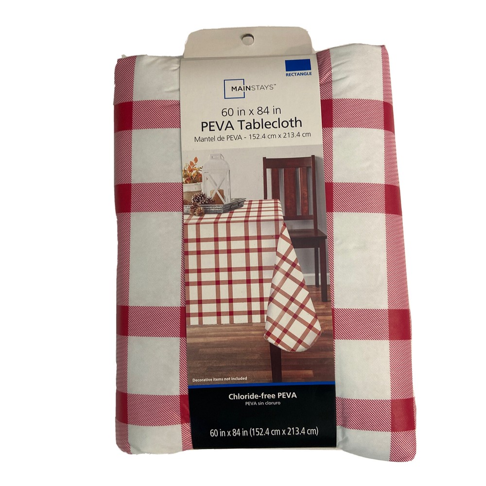 Mainstays PEVA Vinyl Rectangle Tablecloth 60in x 84in Red White Checkered NEW.