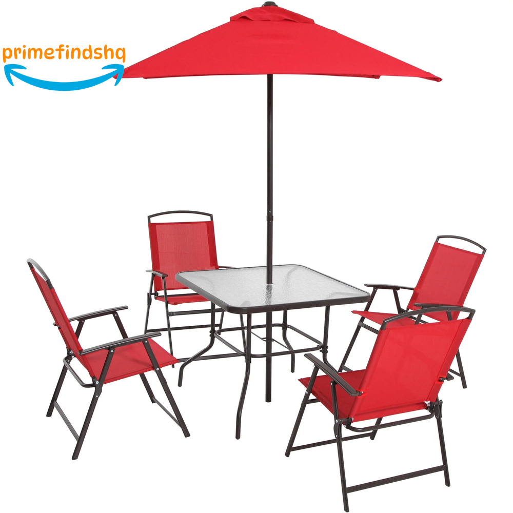 Store New Arrivals Add to Favorite View Feedback Contact Mainstays Patio Dining Set with Umbrella 6 Piece Outdoor Dining Sets FREESHIPPIN Description Features Foldable, Portable, Weatherproof Assembled Product Weight 28.22 lb Finish Powder Coated Seating Capacity 4 Patio Furniture Set Type Outdoor Dining Sets Material Glass, Polyester, Olefin, PVC, Metal, Fabric, Steel Manufacturer Part Number MS16-301-001-12 Color Red Assembled Product Dimensions (L x W x H) 33.80 x 33.80 x 27.50 Inches Entertain friends and family with the Mainstays Albany Lane 6-Piece Outdoor Patio Dining Set. This casual set includes 4 foldable armchairs, a square table with a tempered glass top and umbrella hole, and a stylish market umbrella. The chairs and umbrella feature red sling fabric for quick-drying, and the black frames are made of rust-resistant steel. The all-season set complements any outdoor decor and is easy to assemble. With its quality craftsmanship and traditional style, the Albany Lane set is the perfect addition to your patio, porch, or deck. Mainstays Albany Lane 6-Piece Outdoor Patio Dining Set, Red Casual, outdoor patio set ideal for entertaining, dining, and relaxing Includes 4 foldable, portable, easy-to-store armchairs, a square table with a water-wave, tempered glass top, and a stylish market umbrella Chairs and umbrella feature quick-drying sling fabric; black frames constructed of powder-coated, rust-and-corrosion-resistant steel Stylish, classic look complements most other outdoor furniture and decor Quaint, fun little addition to any porch, patio, or deck Instructions included for easy assembly Materials: Steel, tempered glass, PVC sling, polyester Weight capacity: 250 lbs (each chair) Assembled dimensions: 24.8"L x 22.44"W x 35.83"H (each chair), 33.8"L x 33.8"W x 27.5"H (table), 59.06"L x 59.06"W x 86.61"H (umbrella) Weight: 8.91 lbs (each chair), 28.22 lbs (table), 6.31 lbs (umbrella) Total weight: 70.17 lbs Care: Clean with mild solution of soap/detergent, rinse thoroughly, allow to air dry; do not use bleach or strong solvents as this will cause damage to both fabric and metal finishes primefindshq ABOUT US We offer the best prices around on high quality products. Our E-store includes media such as books, movies, music and games while offering electronics, toys, sporting apparel, clothing, tools, general home, garden items and more. SHIPPING We are always working hard to ensure your package arrives as soon as possible. Please understand that some factors like weather, high postal traffic, and the performance of shipping companies are outside of our control. We offer free shipping to the lower 48 states and ship within 2 business days of payment, usually sooner. We do not accept P.O. Boxes. Please provide a physical address. For shipping outside of the continental USA, we only use eBay's Global Shipping Program.The item is shipped to KY and then sent to the rest of the world. International customers are responsible for all duties and taxes. Continue to check out in order to calculate costs for shipping the item to your country. Messages regarding eBay's Global Shipping Program MUST be directed at eBay EXCLUSIVELY. RETURNS We offer a 30-Day Return Policy on items which you are not completely satisfied with. You have the option for a full-refund or an exchange of the item. No returns are available on items shipped outside of the USA. PAYMENT We accept PayPal. CONTACT US This page content is yet to come Please ad us to your favorite seller and visit again later Thank You CUSTOMER SATISFACTION We try our very best to make sure every customer is completely satisfied. If there's a problem, message us! We're happy to help. WE ACCEPT Copyright © 2021 AutoDS. | All Rights Reserved