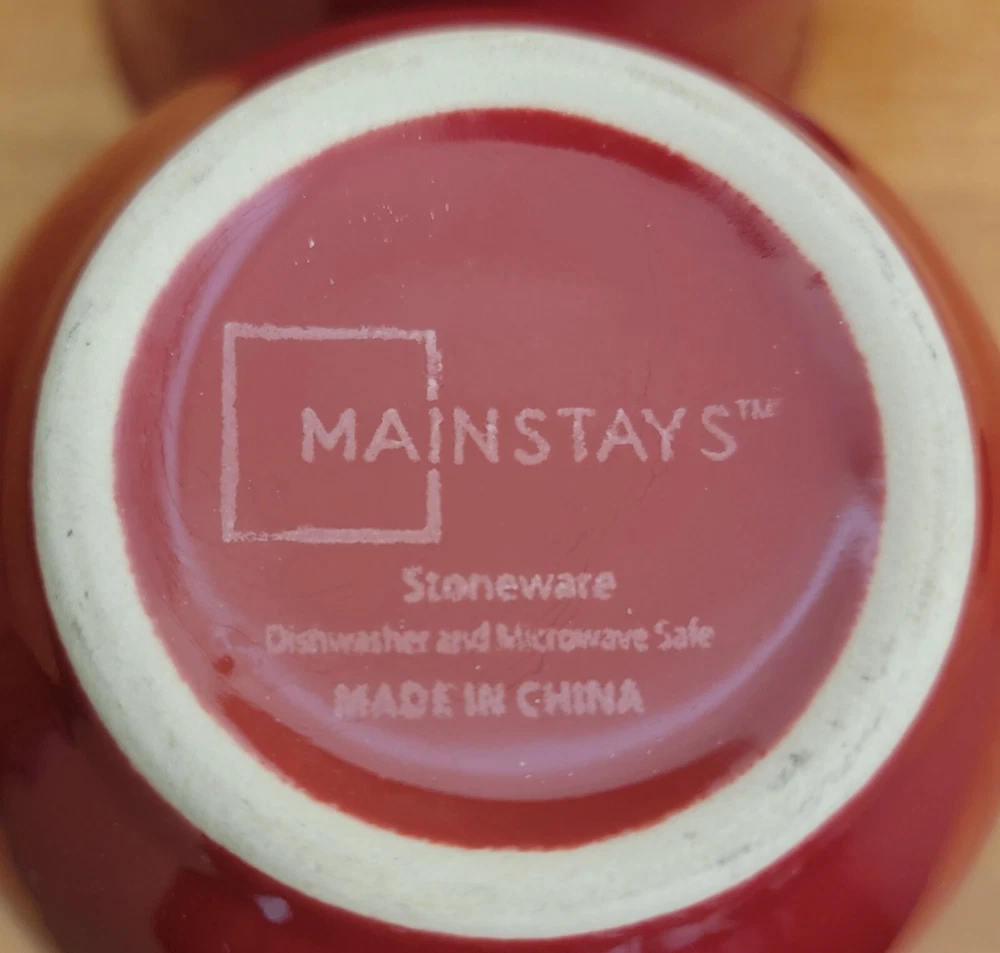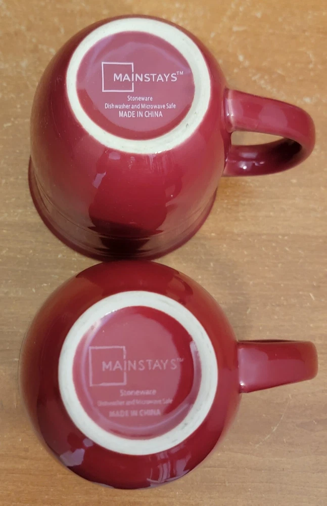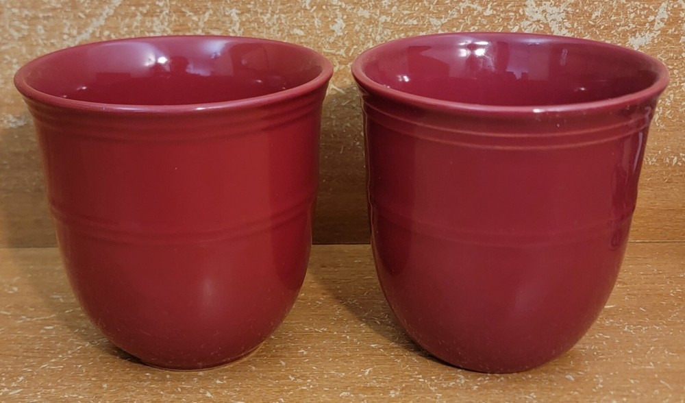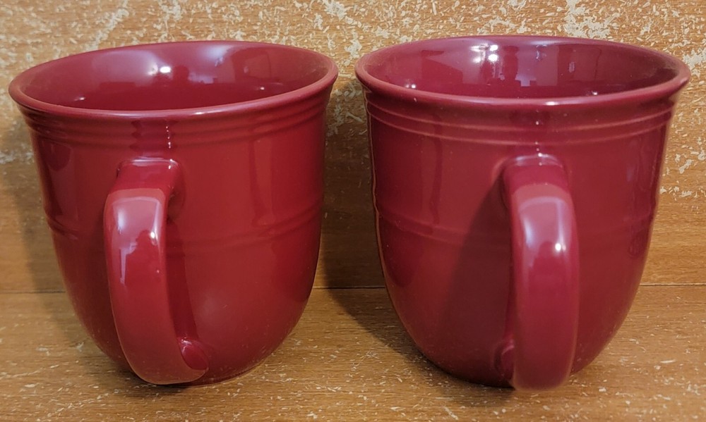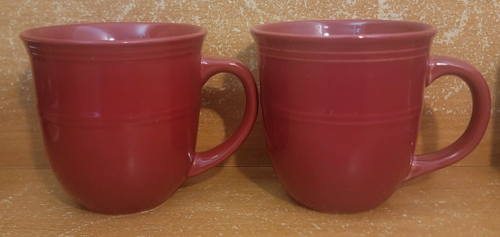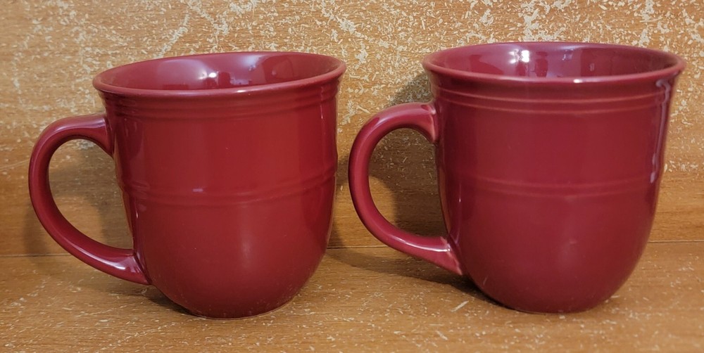 Red Sedona by Mainstays Status: Discontinued Actual: 2011 - 2016 Description: All Red Stoneware, Embossed Rings, Rim, No Trim Piece: Mugs Size: 16 oz / 4 1/8" x 4 1/8" (5 1/2" including handle) Quantity: Set of 2 Visit My eBay Store for additional pieces in this pattern & other great items. I will combine shipping on orders of multiple items. I consider reasonable offers on all listings.