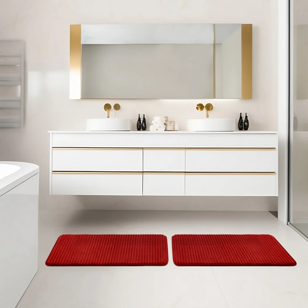 Product details Step into a new level of cushioned comfort and luxury performance. Mainstays Performance Foam Bath rug two pieces provide soft and cushioned comfort underfoot. Designed with velvety plush fabric and quick dry foam, this bath mat is ultra soft and water absorbent. Ideal for use in front of your bathtub, shower or vanity. A versatile color palette works with a variety of bathroom décor. Available in two sizes – 17” x 24” and 20” x 32”. Performance foam provides cushion and comfort under foot Soft, comfortable and absorbent Sustainably sourced and made from recycled polyester Skid resistant backing helps prevent slipping Machine wash and dry When shipped to your home, rugs will arrive in sets of 2, same size, same color.