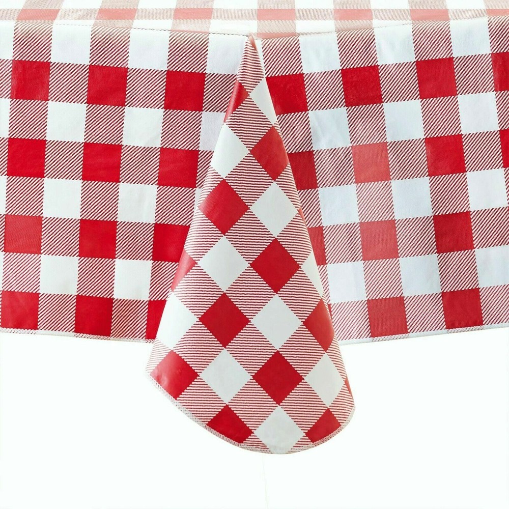 Mainstays Red Check Vinyl Tablecloth Various Sizes / You Choose Chloride-Free PEVA Wipe Clean Damp Cloth Brand New