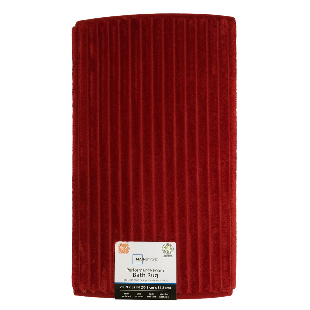 Product details Step into a new level of cushioned comfort and luxury performance. Mainstays Performance Foam Bath rug provide soft and cushioned comfort underfoot. Designed with velvety plush fabric and quick dry foam, this bath mat is ultra soft and water absorbent. deal for use in front of your bathtub, shower or vanity. A versatile color palette works with a variety of bathroom décor. Available in two sizes – 17” x 24” and 20” x 32”. Quick dry Performance foam provides cushioning underfoot. Soft, comfortable and absorbent. Skid resistant backing helps prevent slipping. Sustainably sourced and made from recycled polyester. When shipped to your home, rugs will arrive in 2-piece sets, same size, same color.