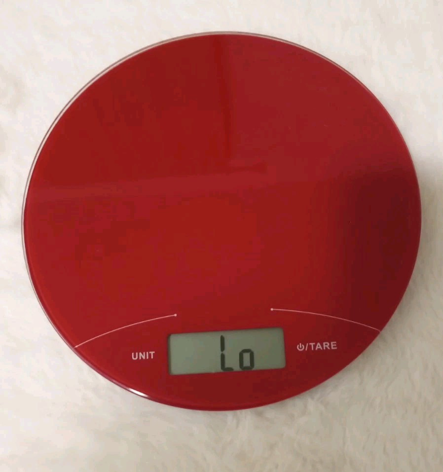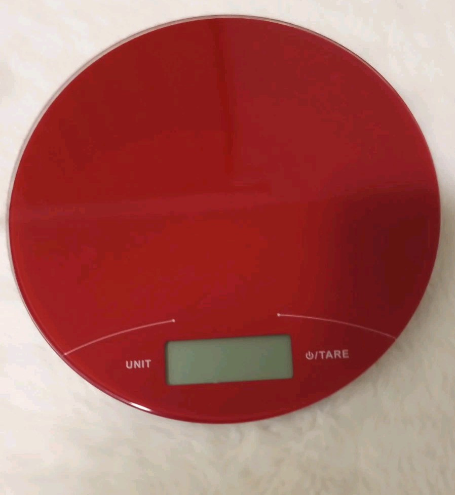 Mainstays Red Round Digital Glass Scale Weighs Up to 11 Lbs with LCD Display. Condition is Used. Shipped with USPS Ground Advantage.