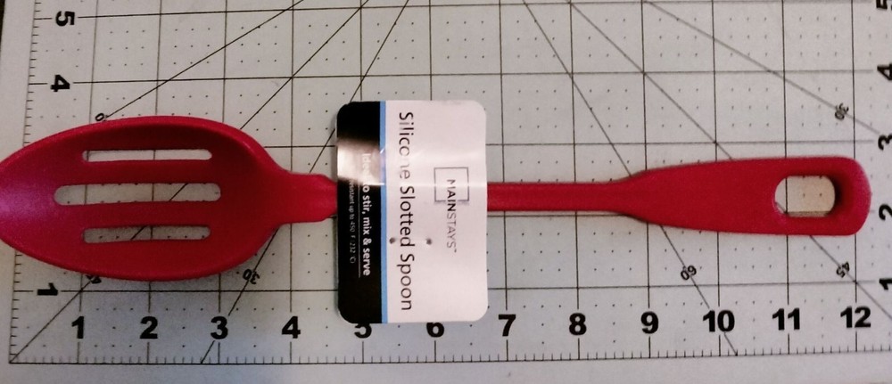 Durable and heat-resistant, this slotted silicone spoon is ideal for stirring, mixing, and serving. Easy to clean and comfortable to use. • Heat resistant up to 450°F (232°C) • Nonstick and dishwasher safe • Lightweight with a comfortable grip • Includes a hanging hole for storage Top to bottom = 12 inches. 2.25 wide. Condition: New With Tags Ships same or next day