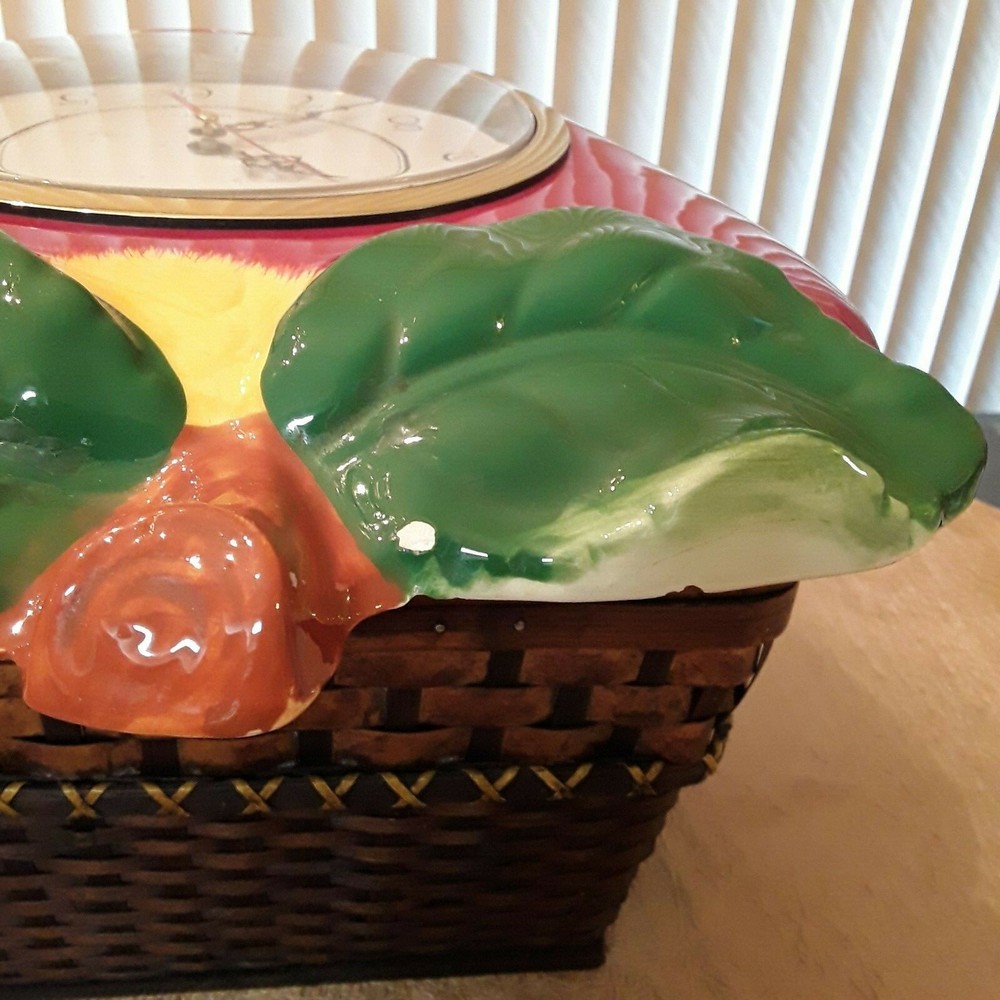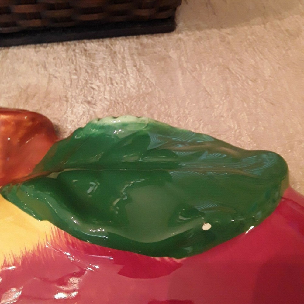 Red Apple Style Shaped Wall Clock Quartz Hand Painted Tested Works! Red, Green, Brown, and White colors. It is unbranded but very closely resembles ACK Trading Company's Red Apple hand painted ceramic products.. Measures approx. 15 inches high x 11 inches wide. There are two small chips on each leaf; scratches on the clear plastic face, and barely noticeable cracks at top and bottom left. Takes one AA battery. There’s a pin dot, 1.5 inch, and a 0.25-inch chip at the bottom center of the clock (see photos). Great piece for the right person! GUC. SALE & SHIPPING INFO Items purchased from me are sourced new from retail stores and are also pre-owned from thrift stores and garage or yard sales. They may have been stored in closets, sheds, attics, or basements. I describe all items honestly with photos showing their true condition. Buyers are encouraged to review the photos and descriptions and to ask questions before purchasing. Pre-Owned Shoes may have slight scuffs, scrapes, scratches, and wear anywhere in and on the shoe. This wear may take the form of dents, nicks, creases, colored markings, stains, toe or footprints, and dirt. As stated, all Buyers are encouraged to review the photos and descriptions and to ask questions or express any concerns before purchasing. Please also note that item colors may vary depending upon the camera used. Most clothing items will be shipped via a polythene bag to keep costs lower for customers. Orders are usually shipped within 1 to 3 days of received payment with the exception of weekends and holidays. PAYMENT INFO All payments need to have a valid shipping address. Payment is expected within two (2) days of an Auction closing and expected immediately when using the BUY IT NOW option. Payments must be made in full and cleared before I will ship any items. Please note: the sooner you pay, the sooner I can send out your item. REFUND INFO Items must be returned within 30 calendar days. When I provide free shipping to buyers, then the buyers are responsible for Return Shipping Costs. No matter the reason you are returning the item, you will be responsible for paying return shipping costs if I provide free shipping. Returns, when applicable, are credited to the buyers account promptly once items are received. Brand new items must be returned with tags and in the original package. All items must be returned in the same condition as received. I am not responsible for any Shipping Damaged items. The items I sell are examined before shipping and I provide buyers with accurate descriptions and photos of the item that includes flaws or damage, if any. Your satisfactory shopping experience is very important to me. Thank you for your interest and your purchase!