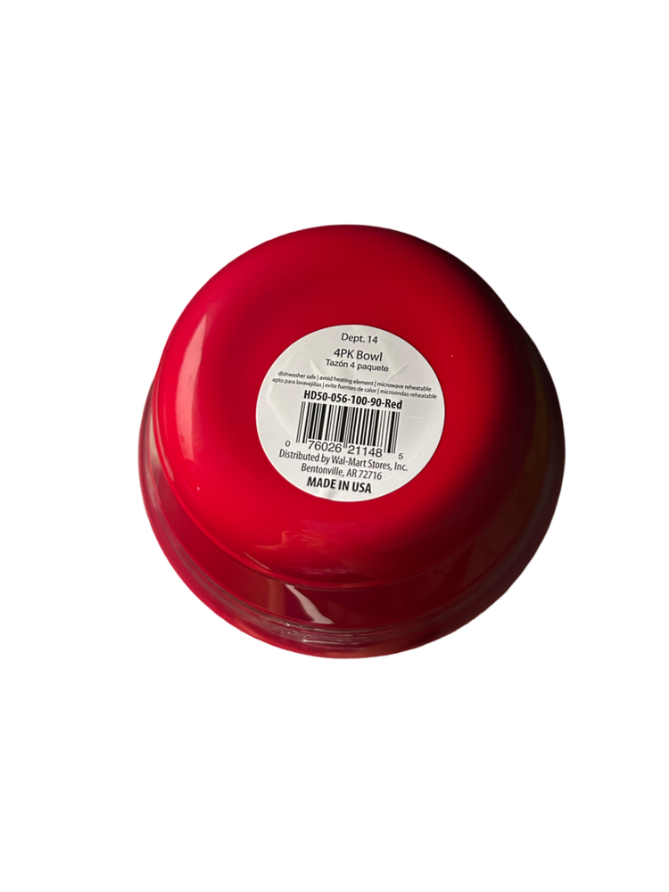 This set of four reusable plastic bowls in a vibrant red color is perfect for any kitchen or dining room. The bowls are made from durable and long-lasting plastic, ensuring that they will remain a reliable addition to your tableware collection for years to come. The set includes four bowls, each of which is perfect for serving soups, salads, or snacks. The bowls are designed to be both practical and stylish, with a sleek and modern design that will complement any home decor. They are perfect for use at home or on the go, and are sure to become a favorite for all your dining needs. Whether you're hosting a party or simply enjoying a meal with your family, these bowls are the perfect choice.