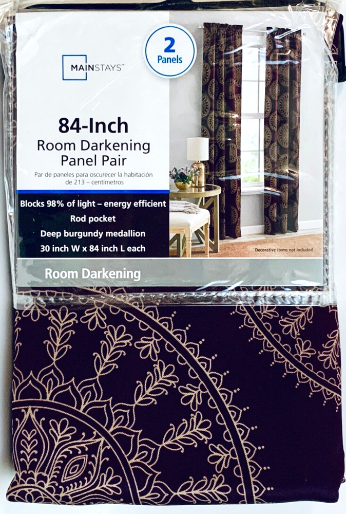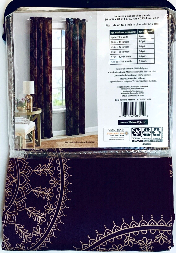 Mainstays Room Darkening Deep Burgundy Medallion 2 Count Panels 30" W X 84" L....