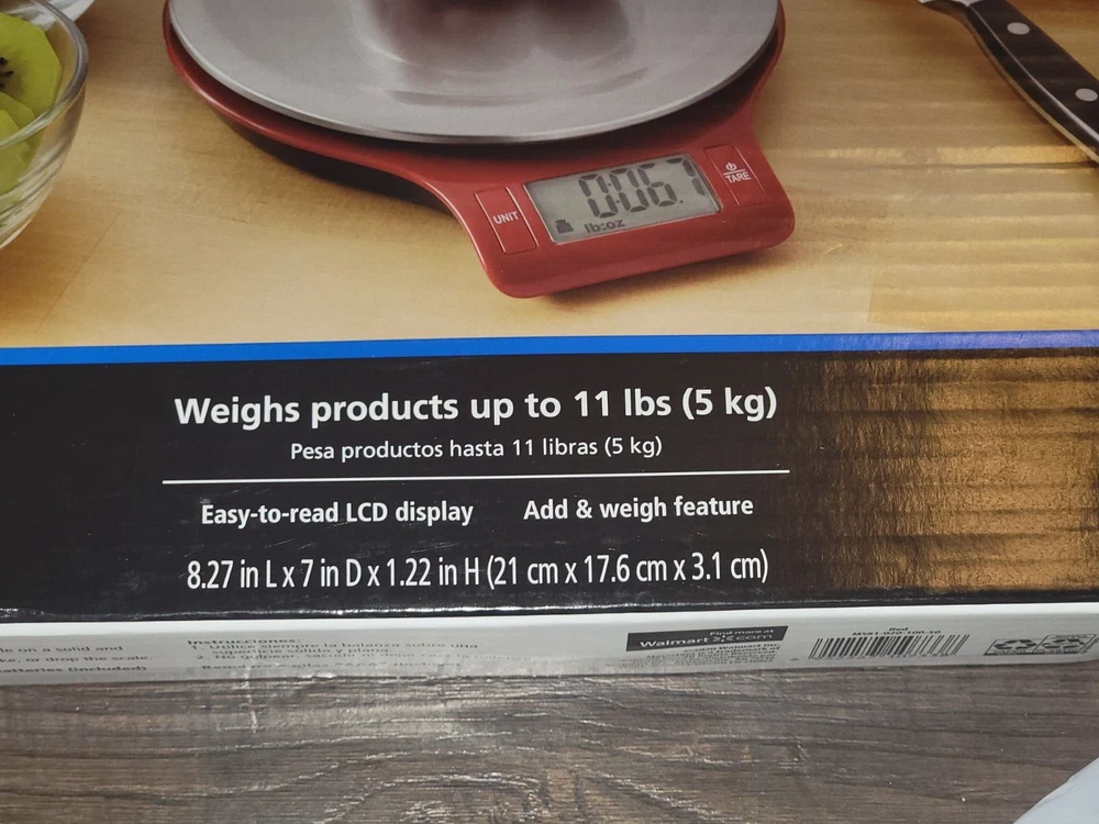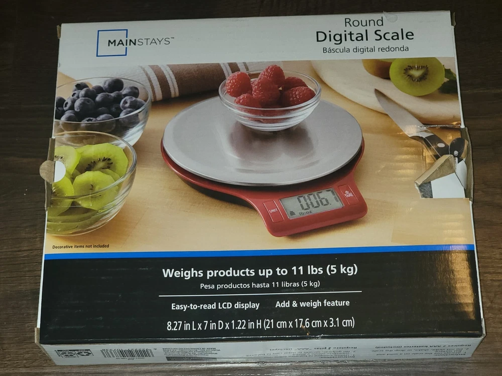Brand New in Box Mainstays Kitchen Scale Weighs products up to 11 lbs Please see photos for specifications and let me know if you have any questions!