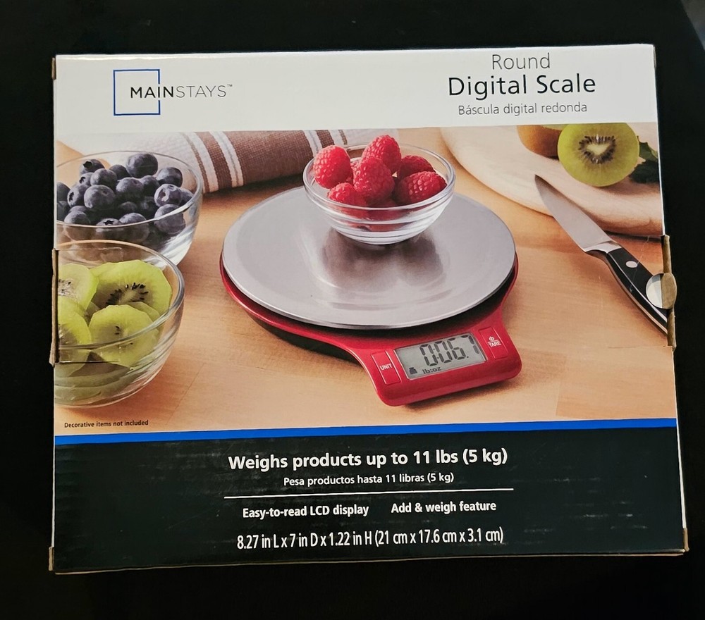 This round digital kitchen scale is a necessary tool for any modern kitchen. With its sleek stainless steel platform and red color, it is not only practical but also stylish. Its large LCD screen and digital features make it easy to measure the weight of any food item. You can take it with you anywhere since it is battery powered and has an item diameter of 7 inches. This digital scale will be a perfect addition to your kitchen tools and gadgets.