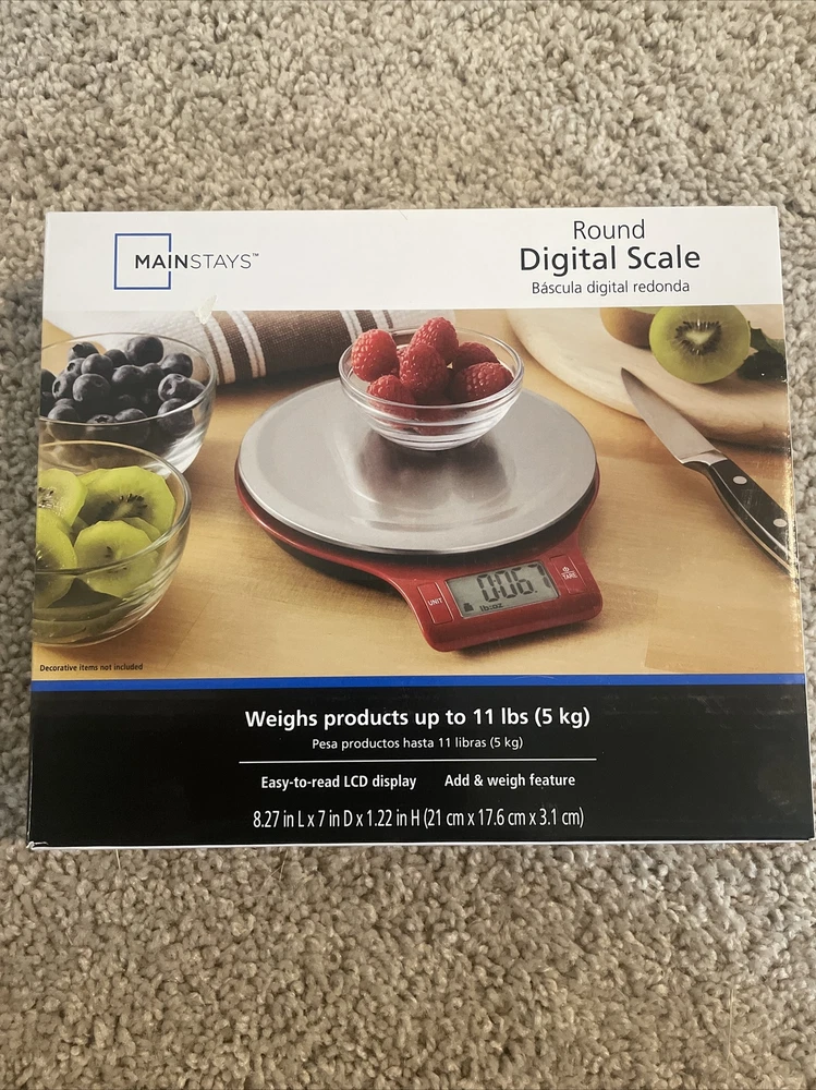 Mainstays Round Digital Kitchen Scale, Food Scale, Stainless Steel Platform, LCD. Condition is New. Shipped with USPS Ground Advantage....