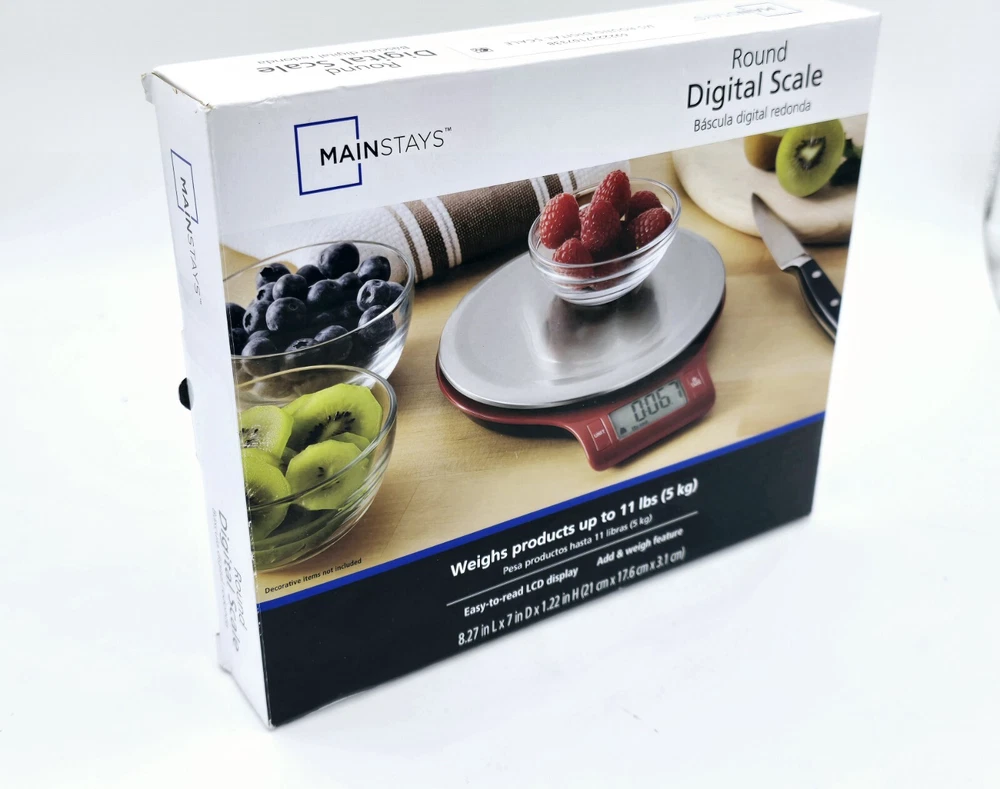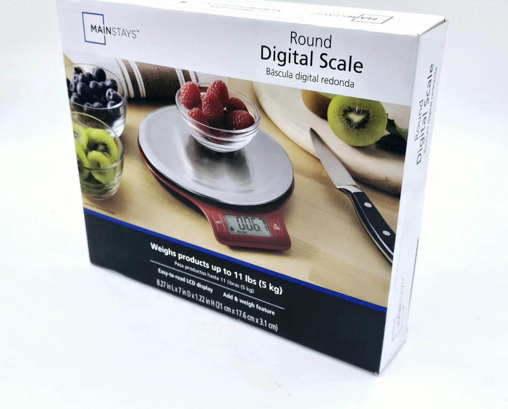 Mainstays Round Digital Kitchen Scale, Food Scale, Stainless Steel Platform, LCD