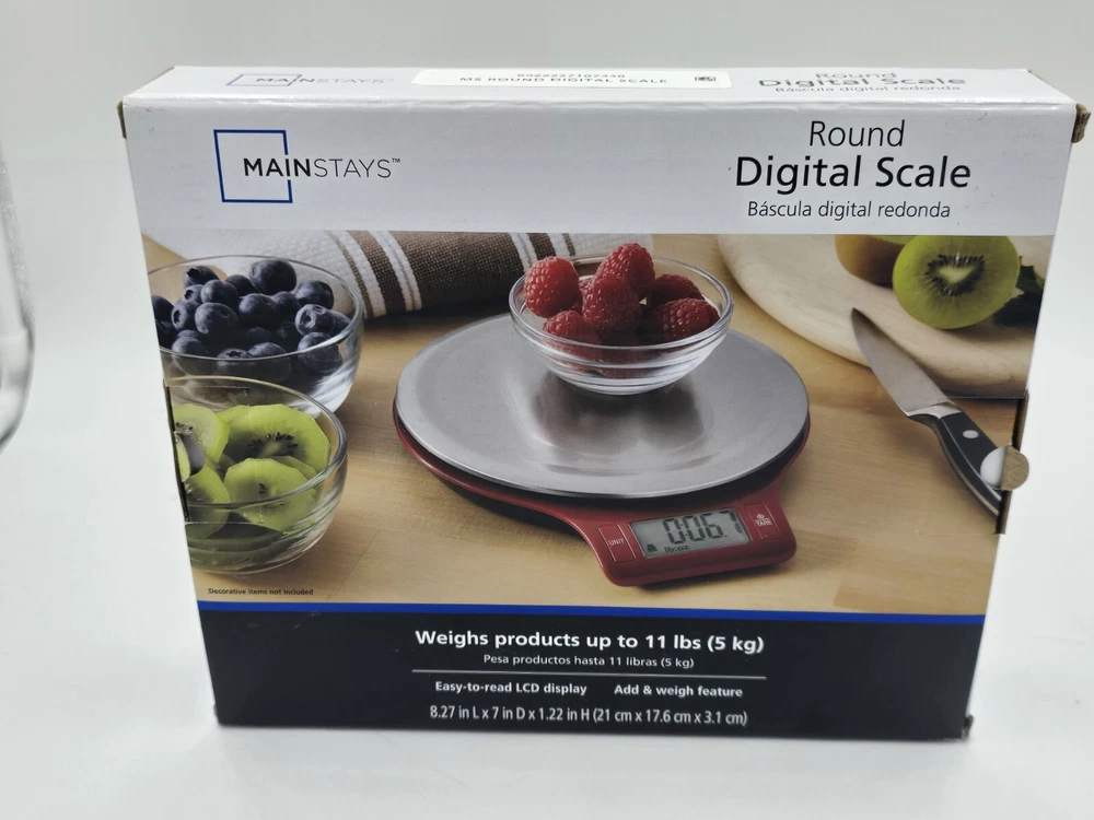 Mainstays Round Digital Kitchen Scale, Food Scale, Stainless Steel Platform, LCD...