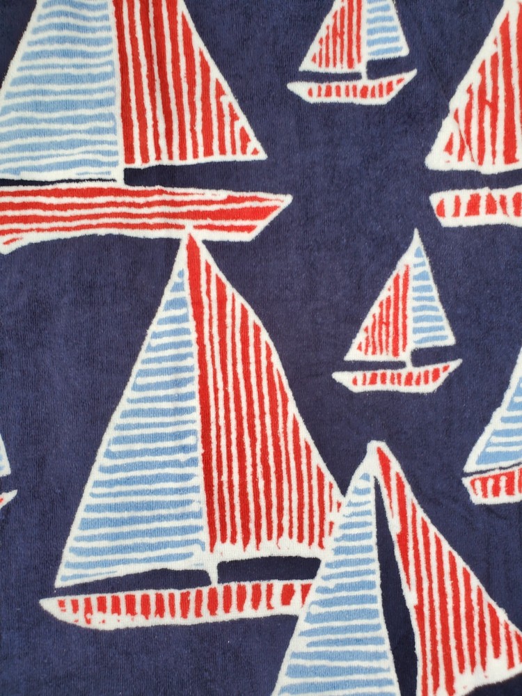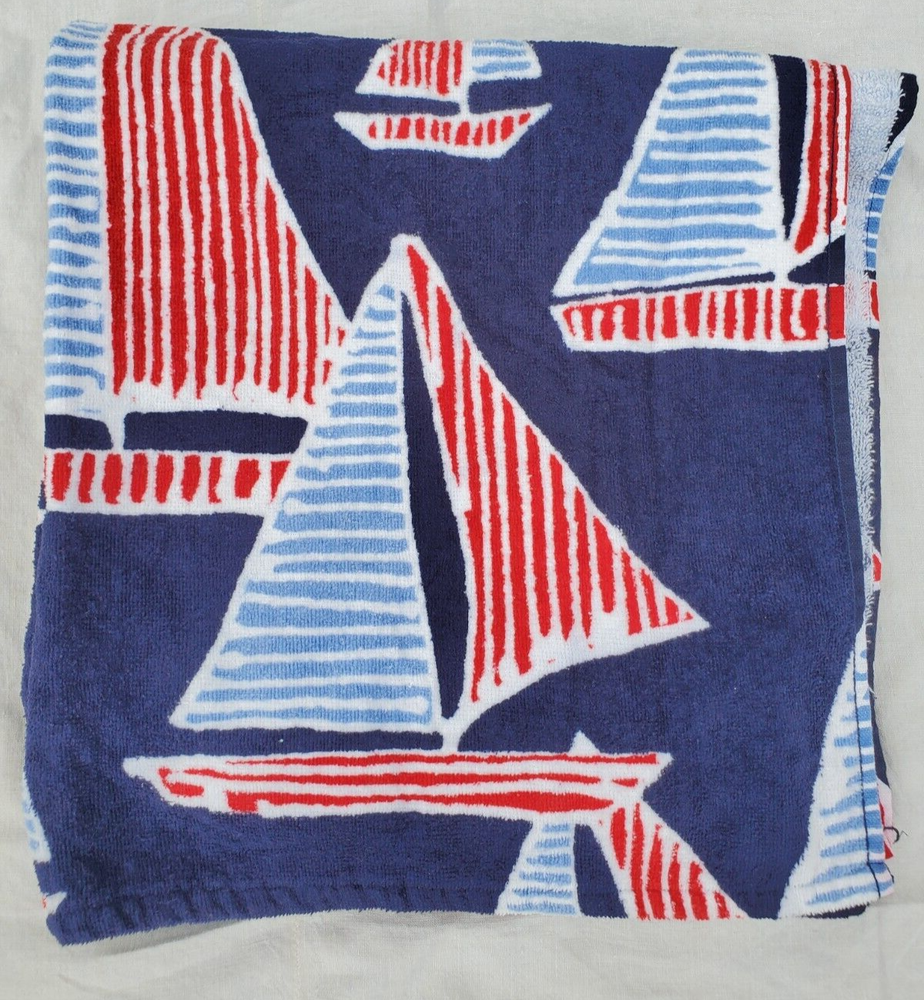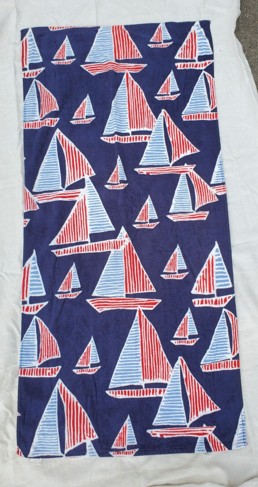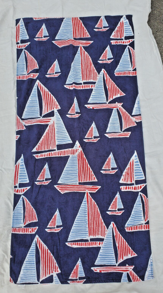 Mainstays Sailboats Beach Towel 28x60" 100% Cotton Navy Blue & Red In very good condition - from a smoke-free environment. Please take a look at our other items! ! ! ! Happy buying!...