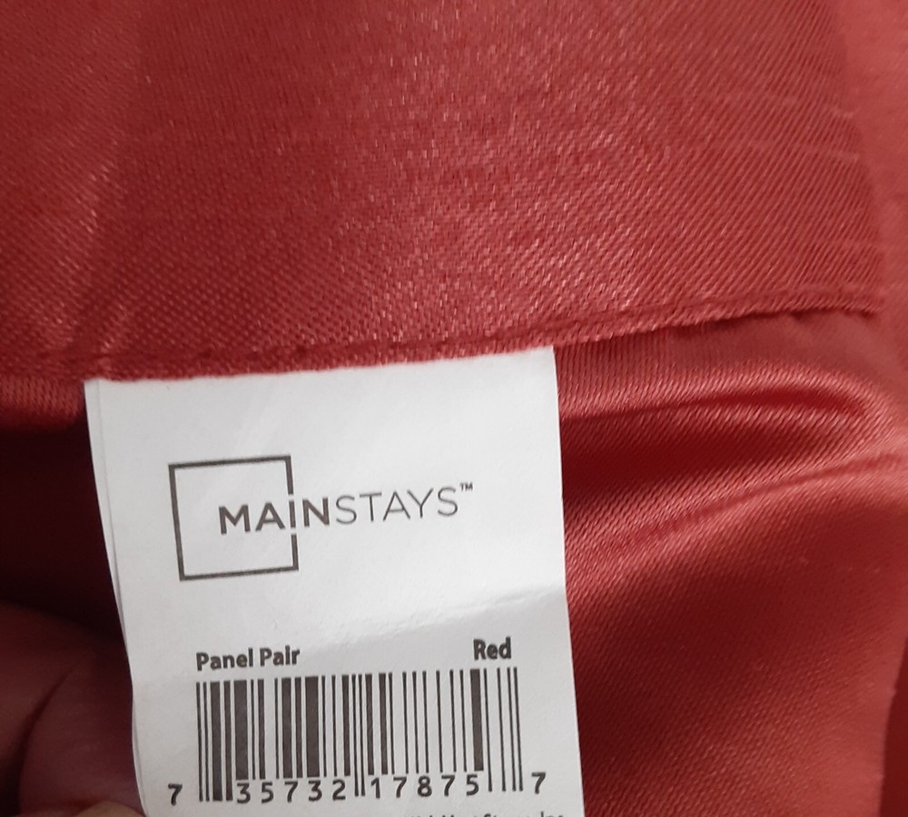 Early Mainstays Shimmering Semi sheer curtain panels x 2 in Chili Red. Rod pocket. Approximately: 37.5 x 84" each