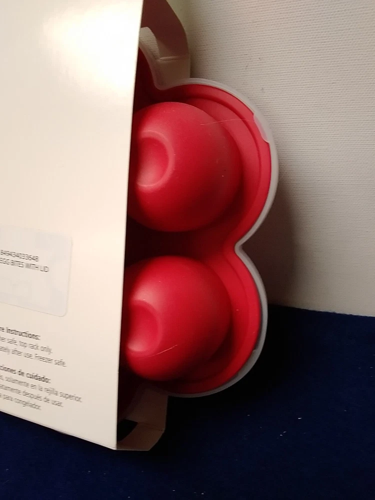 New Mainstays Silicone Egg Bites with Lid Red with Clear Lid Holds 7 Eggs * Heat Resistant up to 445 Degrees * Great for Eggs Bites, Muffins, Yogurt & More * Dishwasher and Freezer Safe