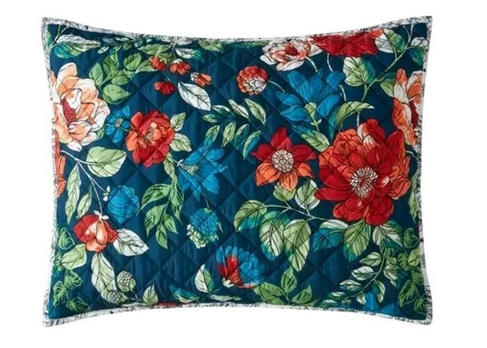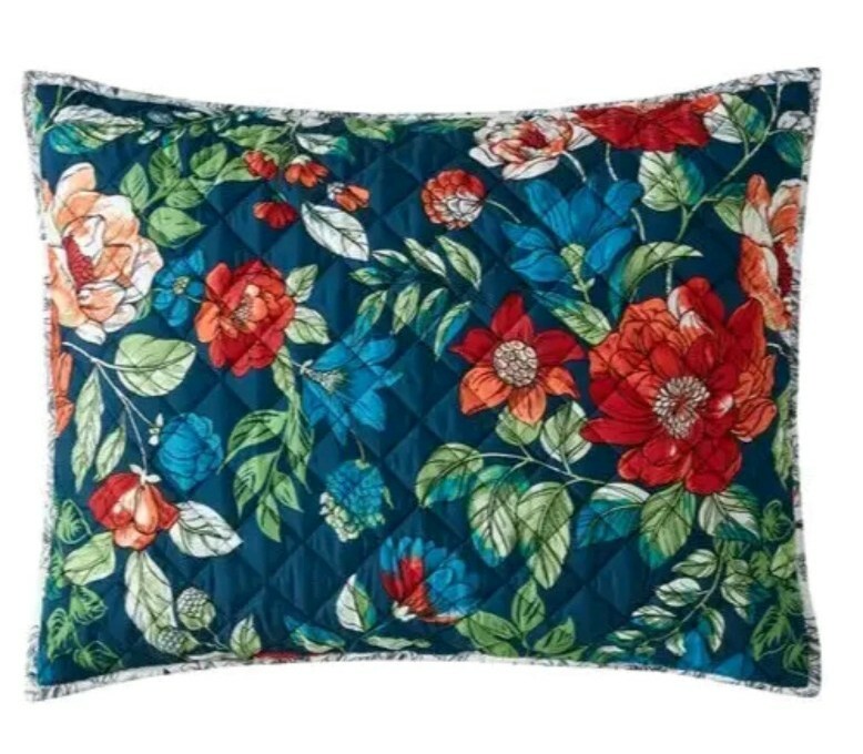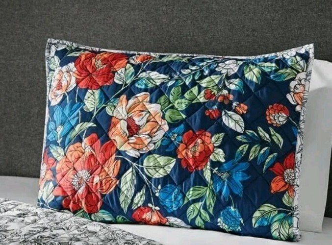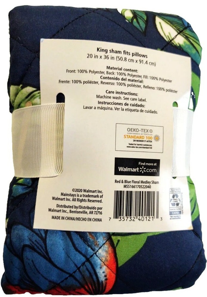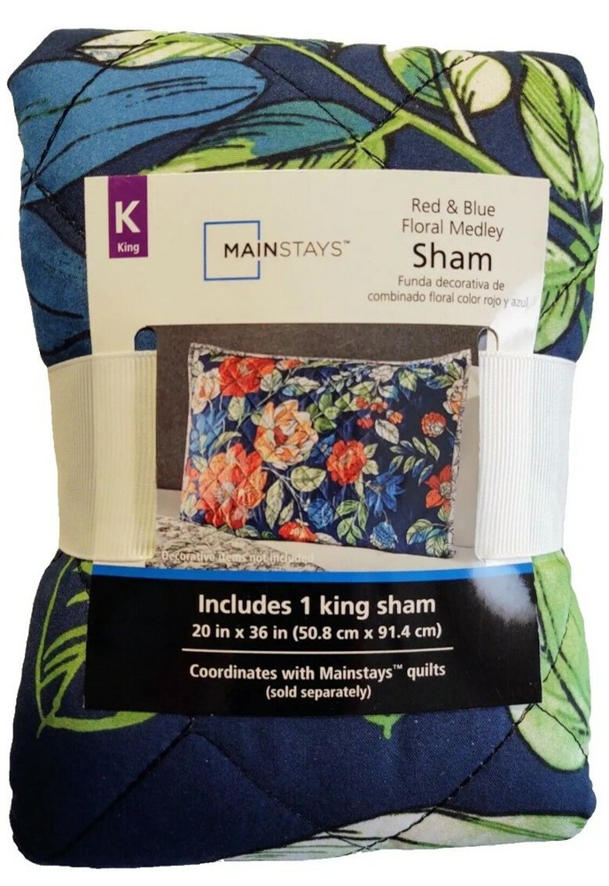 Add a touch of elegance to your bedroom decor with this Mainstays Standard/Queen Pillow Sham. The beautiful floral pattern in green, red, and blue on a rectangular shaped pillow sham is sure to make your bed stand out. Made of 100% polyester and quilted for added comfort, this pillow sham is perfect for any standard or queen sized pillow with a width of 20 inches and a length of 28 inches. Machine washable and tumble dryable, this Mainstays Pillow Sham is easy to clean and maintain. The brand Mainstays ensures high-quality material, making it durable and long-lasting. Perfect for your bedroom, this pillow sham is an excellent addition to your bedding collection. Machine Washable