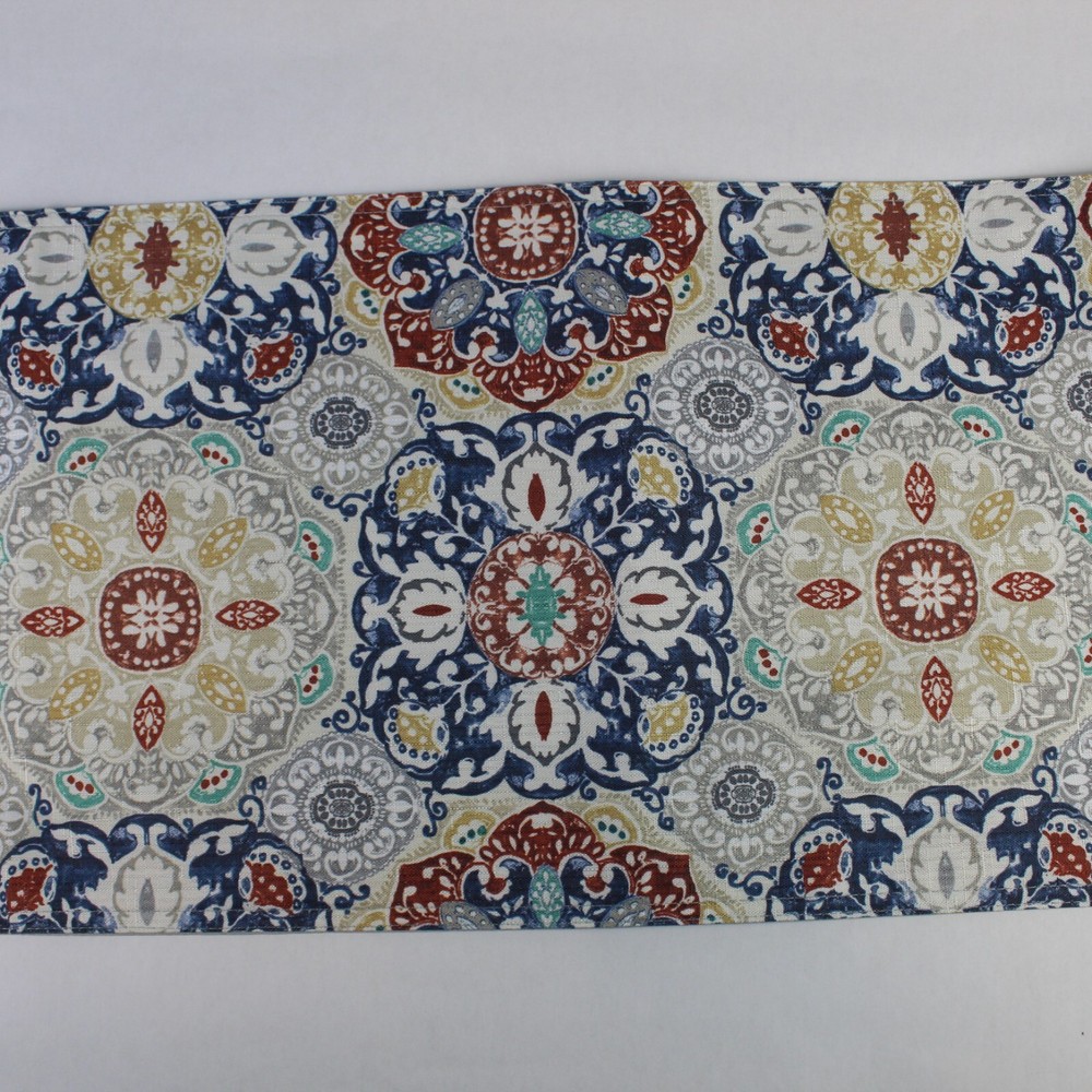 Mainstays Table Runner Print Style: Bohemian Mandala Size: 72 inches long x 12 inches wide (182.9 cm x 30.5 cm) Color: Multicolor including Blue, Gold, Red, Turquoise - Gray Visit our store to see discount specials and view more items for your home, family and friends. _____________________________________ Questions? Please contact us. Our goal is happy customers with purchases they love. Thank you for shopping with QTP Sales! Return Policy - Items must be returned in original condition. A deduction to the refund amount may be incurred if item is returned with damage, signs of use or wear, missing parts or tags, with broken seal or other that reduces the value of the item.
