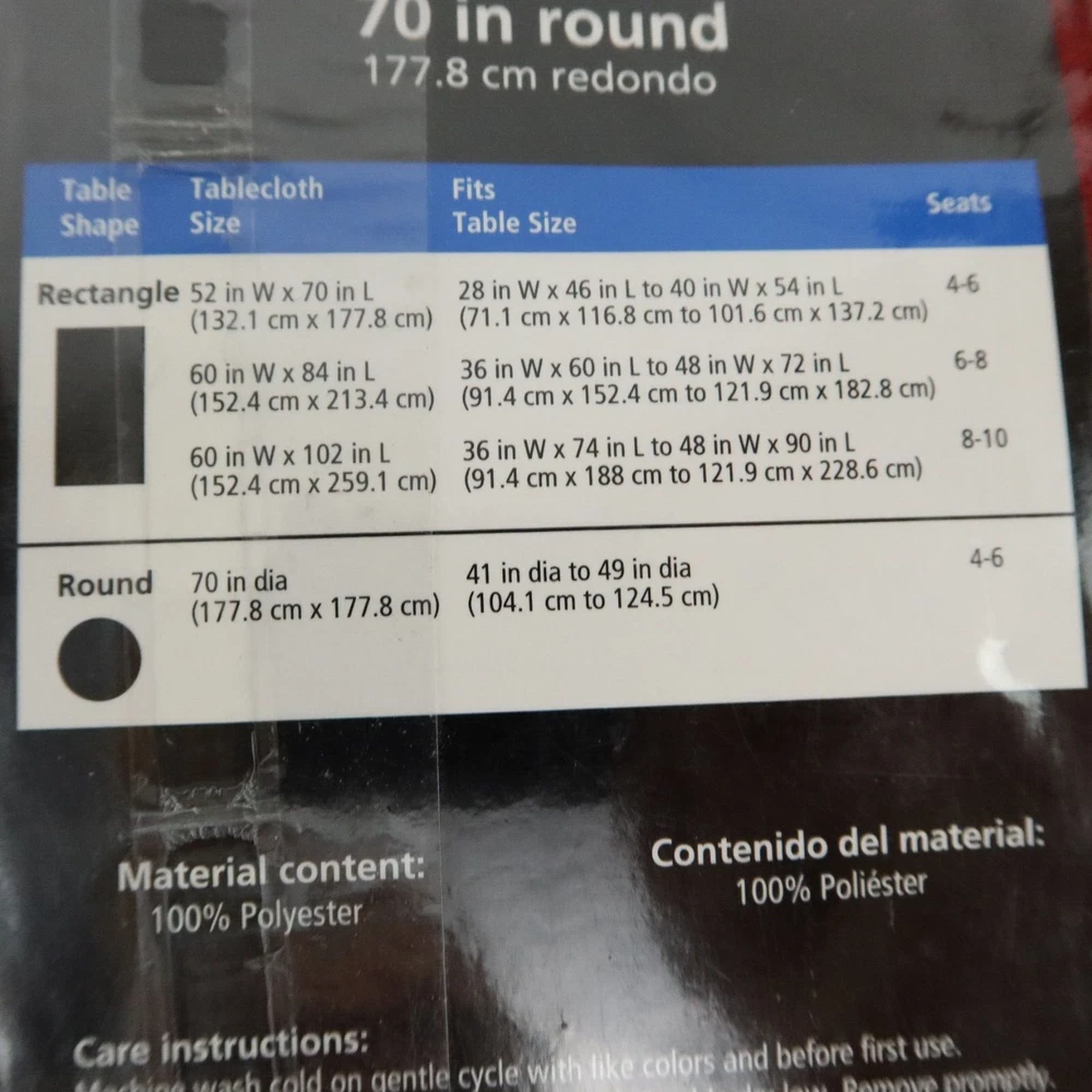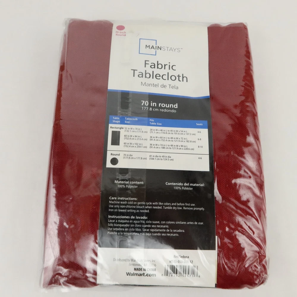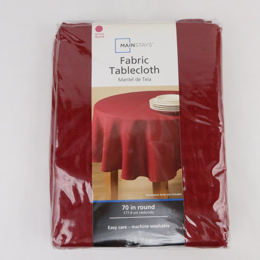 Mainstays Tablecloth Round Red 70" Diameter Fabric Sedona Fits 41-49" Table Size 70" diameter (fits 41-49" diameter table) Polyester Machine Washable...