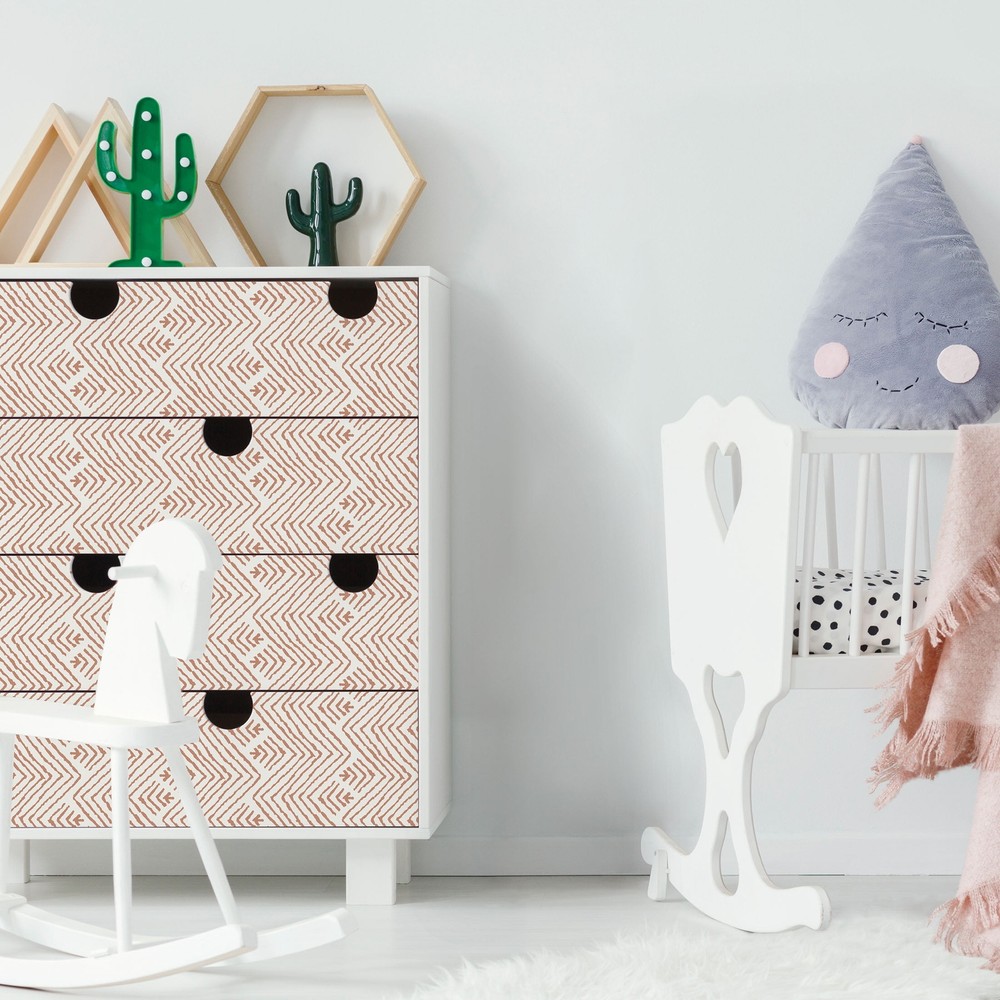 Add a pop of personality to your space with Boho ZigZag removable wallpaper in canyon red, a playful and eclectic choice for any interior. Discover the Perfect Peel and Stick Wallpaper for Your DIY Home Projects Today! Explore our captivating collection and transform your living spaces with an air of sophistication and charm. Whether you want to create a focal point with a feature wall or simply call attention to a small space or object - our peel and stick wallpapers offer the ideal solution for easy, yet stunning DIY transformations. Terracotta Boho ZigZag Peel and Stick Wallpaper Add a pop of personality to your space with Boho ZigZag removable wallpaper in canyon red, a playful and eclectic choice for any interior Instant Transformation: Elevate your interior decor instantly without the mess and of time-consuming traditional wallpaper installations DIY-friendly: Self-adhesive application means no messy glues, making your projects a breeze Versatile Design Options: Explore a diverse array of captivating designs, that allow you to express your unique style and personality Damage-Free Removal: Enjoy the flexibility of redecorating without worrying about damaging your walls. Our peel and stick wallpapers remove easily in full sheets and leave no adhesive residue, ensuring a stress-free experience Budget-Friendly Upgrade: Achieve a high-end look without breaking the bank. Our affordable peel and stick wallpapers provide an economical solution for enhancing your home Resilient and Long-Lasting: Made from high quality materials that withstand the test of time, wallpapers stay up as long as you want, while maintaining their vibrant colors - even in high-traffic areas Bathroom-Friendly: Steam and moisture resistant, so a perfect choice for bathrooms and high-humidity areas Applications: Try it on walls, furniture, ceilings, bookcases, stair risers, and more. For best results, apply to clean smooth surfaces Easy to Clean: Wipes clean with a gentle, damp cloth Fire Rating: Class A rated Each roll is 17.8 in wide x 9 ft. long