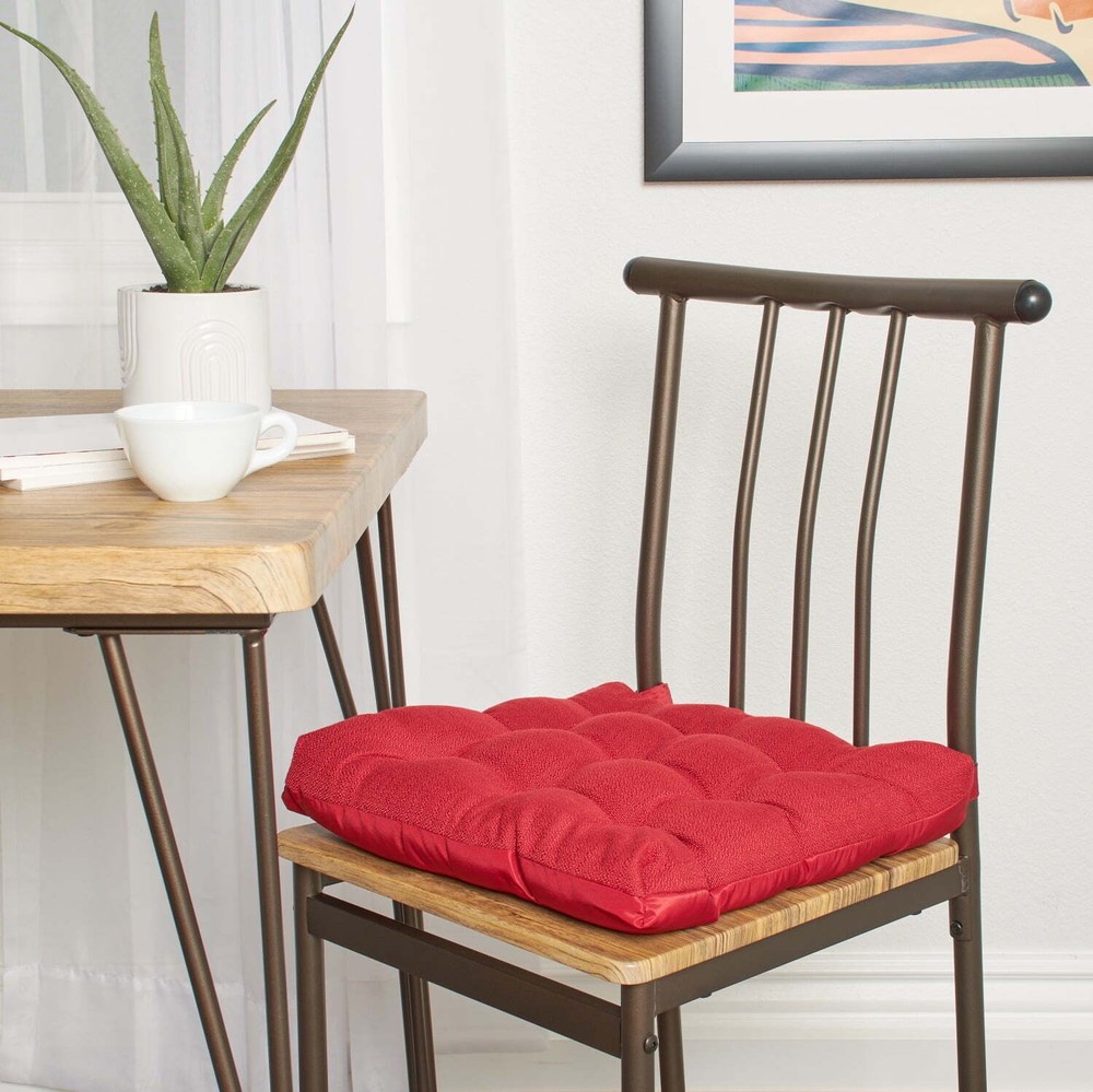 This seat cushion is a game-changer for any hard chair! The soft, textured fabric adds a cozy touch while the Velcro straps keep it securely in place. It’s plush yet supportive, making long dinners or chats way more comfortable. The classic tufted design looks great, and the red color brightens up the room. Perfect for adding extra comfort without sacrificing style—highly recommend!