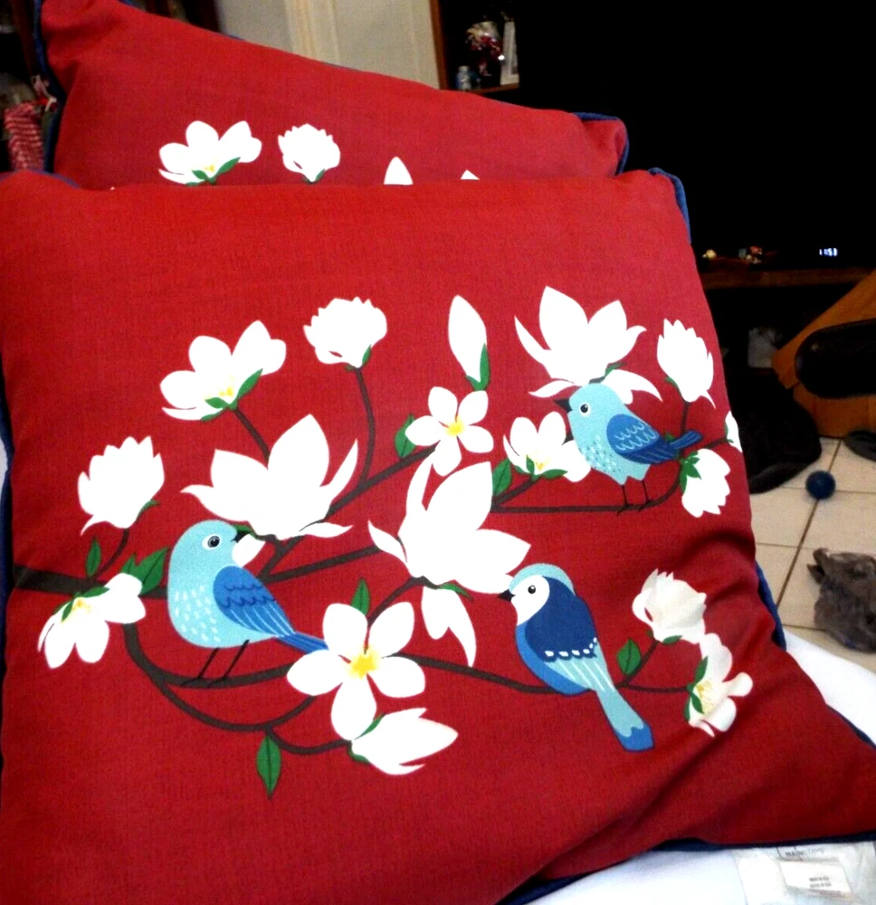 Mainstays Throw Pillows Red Blue Birds with Flowers, 19 x 19 x 4, NWOT, Set of 2. New condition, see photos as they are part of the description . Fast Shipper Please look at my photo's True color may vary slightly due to light & camera settings. My home is smoke and pet free. All my clothing is clean with no stains, rips etc. May have some minor wear from washing, see photo's. SHIPPING FOR UNITED STATES includes delivery confirmation! I will combine shipping, just let me know you've purchased multiple items and wait for an invoice from me. ALL PROBLEMS CAN BE RESOLVED WITH COMMUNICATION...PLEASE CONTACT BEFORE LEAVING NEGATIVE FEEDBACK. If you have any questions feel free to e-mail me before bidding...i will try to answer all questions as honestly as i can...I've worked hard to achieve good feedback and want to keep it that way...We also have a smoke free home.... Thanks LISTING DAILY !! i tem #04233354996