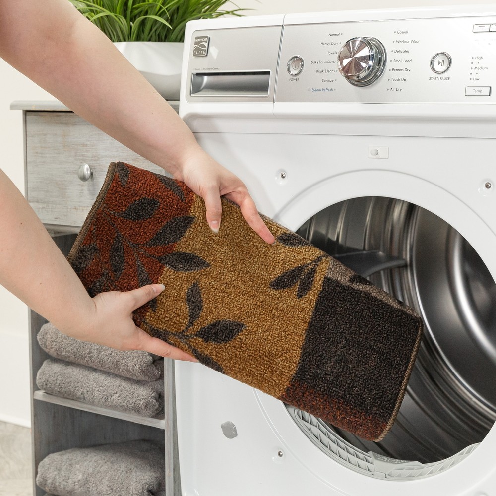 Product details Instantly update your home with the Mainstays Leaf Block Value Loop Print Area Rug or Runner. This indoor rug collection features a modern twist to a traditional block pattern with an accented leaf design. With 5 different colorways available including multi-color, gray, blue, aqua and rust, it’s easy to fit any existing decor. The Mainstays Leaf Block Rug Collection is made with stain and fade resistant polyester yarn. All sizes of this style have non-slip latex backing to help keep it in place on your floors. The Mainstays Leaf Block Rug features a durable construction and stylish design at an affordable price, perfect for any room of your home; bedrooms, living room, dining room, hallway, or home office. 100 Percent Polyester Yarn Level Loop Pile Construction Skid-Resistant Latex Backing Stain and Fade Resistant Actual Size is 1'8" x 2'10" or 20 inches x 34 inches Machine Washable Indoor Use Available in 5 colorways Mainstays Brand Machine Tufted in the USA
