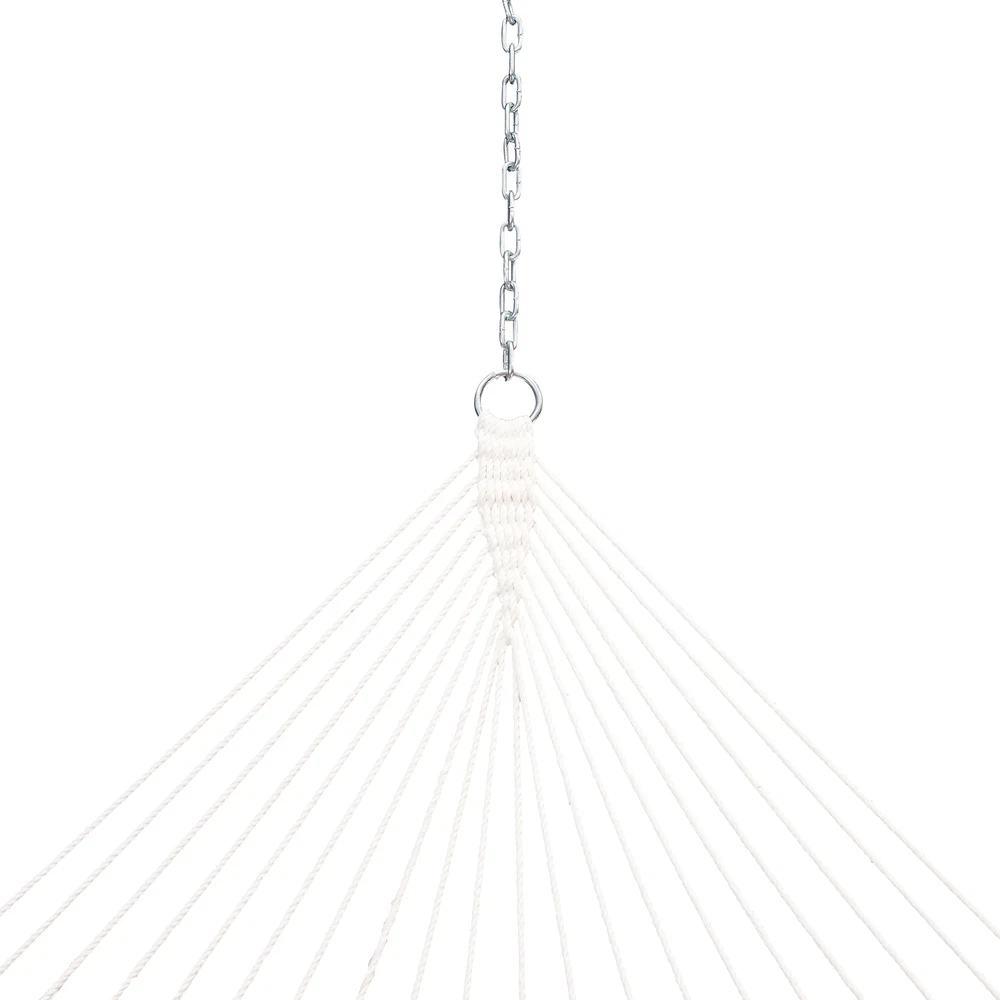 Product details Relax with a friend in the Mainstays Terracotta Quilted Double Hammock with Pillow. Sized to comfortably hold two adults, you can set up this hammock just about anywhere: in your backyard, on the deck, or under your favorite tree. This full-size Tree hammock comes complete with a matching bolster pillow so you have a comfortable place to relax, read, or nap outdoors. Made from a durable polyester in a pretty orange red color, the Mainstays Terracotta Quilted Double Hammock with Pillow has durable rope construction, macrame ends, and strong hardwood spreader bars that make it easier to get in and out. 100% Polyester Mainstays Tree Hammock, Red: Quilted hammock with bolster pillow holds two adults Comfortable hammock is perfect for outdoor relaxation and fun Includes matching pillow to cradle your head for total relaxation Pillow can be buttoned into place or removed for easy cleaning Made from durable, quilted polyester fabric in terracotta Ropes with macrame ends securely connect to spreader bars Heavy-duty spreader bars are made from durable hardwood Hammock measures 55" wide and 135" long to comfortably hold two adults Hang in backyards, decks, patios, porches, and more Some assembly needed Holds up to 445 lb. Includes 2 chains and 2 S-hooks for easy hanging Imported Specifications Features Easy Clean Country of Origin - Textiles Imported Brand Mainstays Assembled Product Weight 11.02 lbs Manufacturer TOP ASIAN RESOURCE CO.,LTD Color Red Assembled Product Dimensions (L x W x H) 135.00 x 55.00 x 0.79 Inches