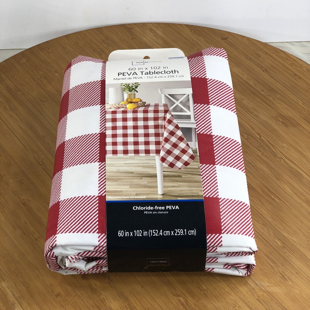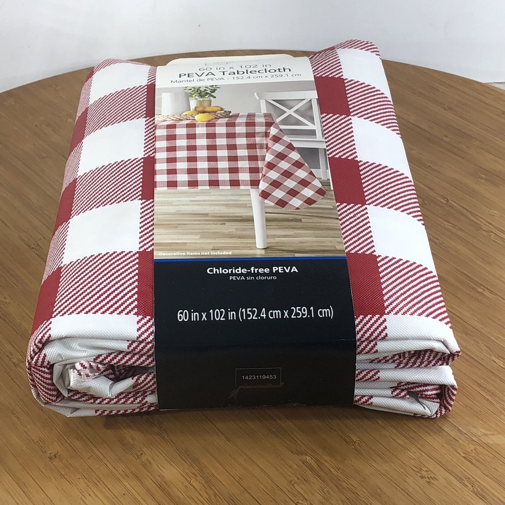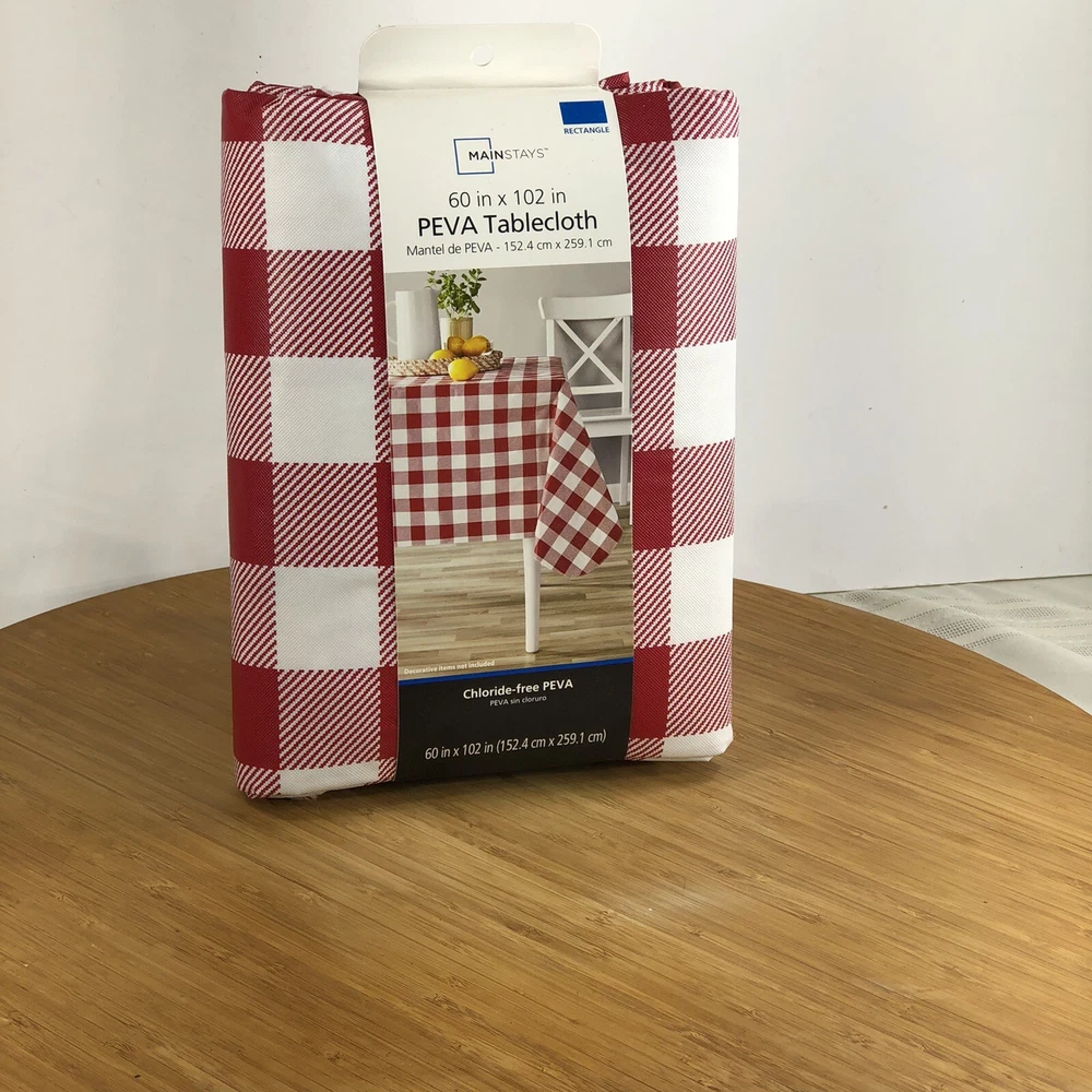 Mainstays Vinyl 100% PEVA 60 x 102" Rectangle Indoor Outdoor Tablecloth - Red White Checkered.