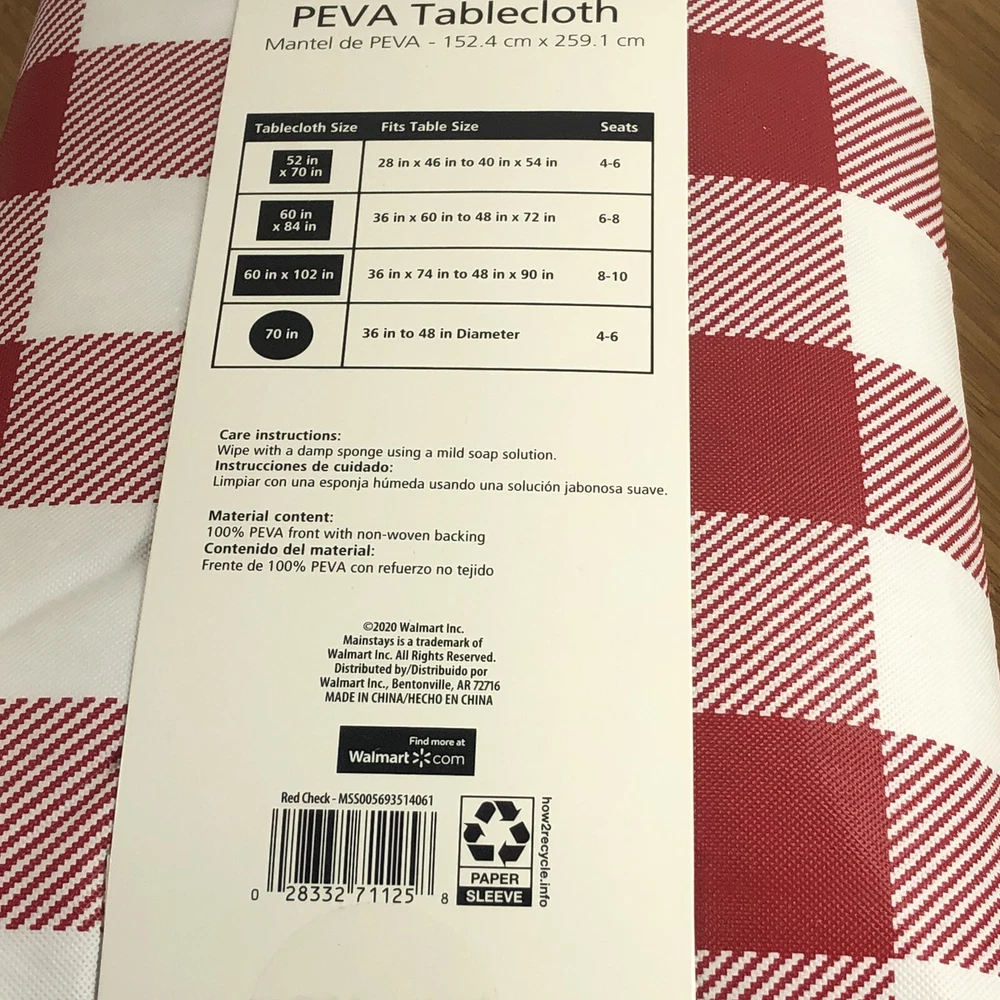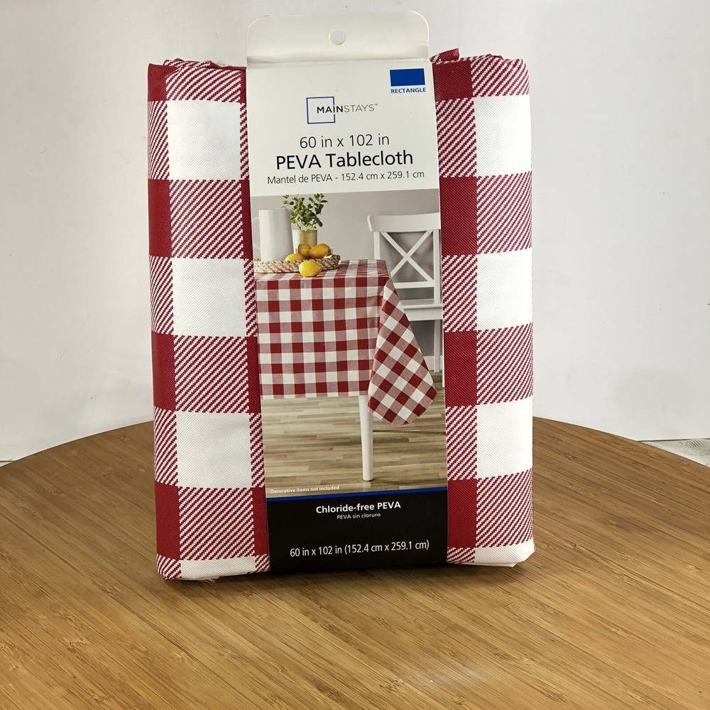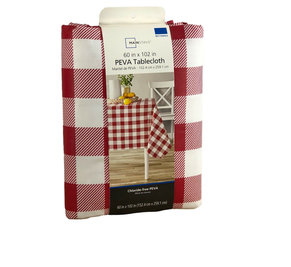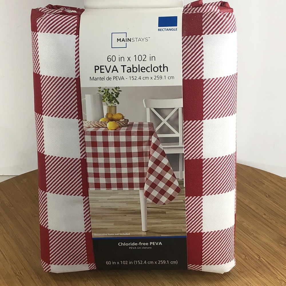 Mainstays Vinyl 100% PEVA 60 x 102" Rectangle Indoor Outdoor Tablecloth - Red White Checkered....