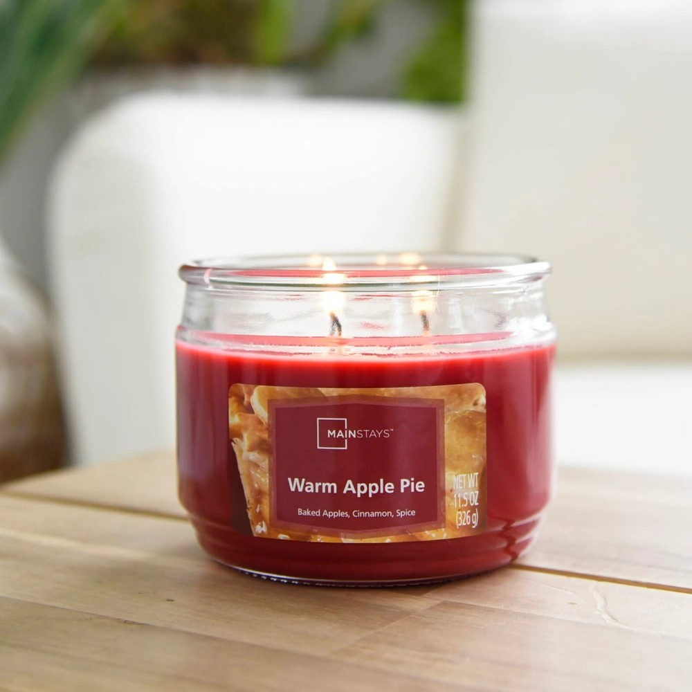 Mainstays Warm Apple Pie Scented 3-Wick Glass Jar Christmas Holiday Candle, 11.5.
